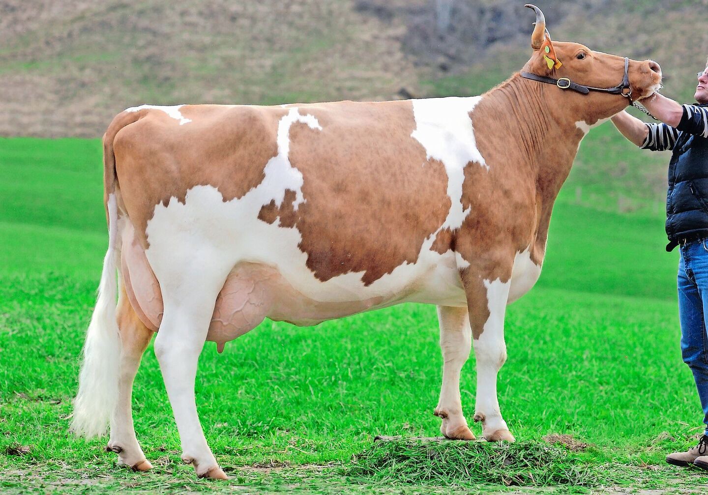 Noch heute setzt er ab und zu noch alte Genetik ein. «Wenn eine Kuh vor zehn Jahren schon 9000 kg Milch gegeben hat, warum soll sie es heute nicht mehr tun, obwohl ihr Vater vielleicht jetzt in der Zwischenzeit im Minus beim Zuchtwert Milch ist?», fragt er sich. Auf jeden Fall haben Hadorns den knapp einjährigen Stier Alfredo dann am Thuner-Zuchtstiernmarkt präsentiert und ihn zu 50 % an Rolf Dummermuth aus Fahrni b. Thun verkauft. Die restlichen 50 % blieben in ihrem Besitz.