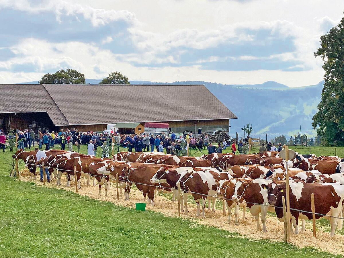 Rund 90 geschmückte Kühe wurden vergangene Woche auf den Schauplatz der Familie Lisser auf dem Mittleren Passwang getrieben. Dort fand die Herbstbeständeschau des Viehzuchtvereins Passwang statt, der dieses Jahr sein 97-jähriges Bestehen feiert. Das Spektakel und die anschliessende Punktierung und Rangierung der Kühe zog Zuschauer(innen) aus allen Himmelsrichtungen auf den Passwang. Verschiedene Kandidaten der kommenden nationalen Wahlen waren ebenfalls unter den sehr zahlreich erschienenen Gästen anzutreffen.