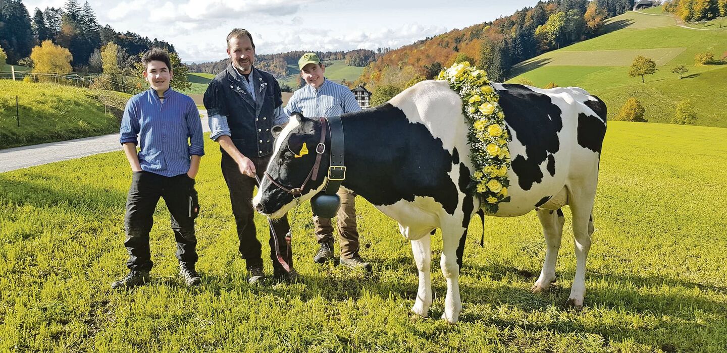 Mit gut 6000 kg starteten beide Kühe in ihre erste Laktation, steigerten sich dann im Laufe ihres Lebens bis über 11'000 kg Milch. «Jedes Jahr nehmen wir Juni und Juli auch immer noch an die Viehschau mit», erzählt der Junior Nils Bernhard. «Diesen Herbst haben wir sie zum ersten Mal mit dem Viehwagen geführt, sonst sind sie immer noch gelaufen», so der Betriebsleiter.