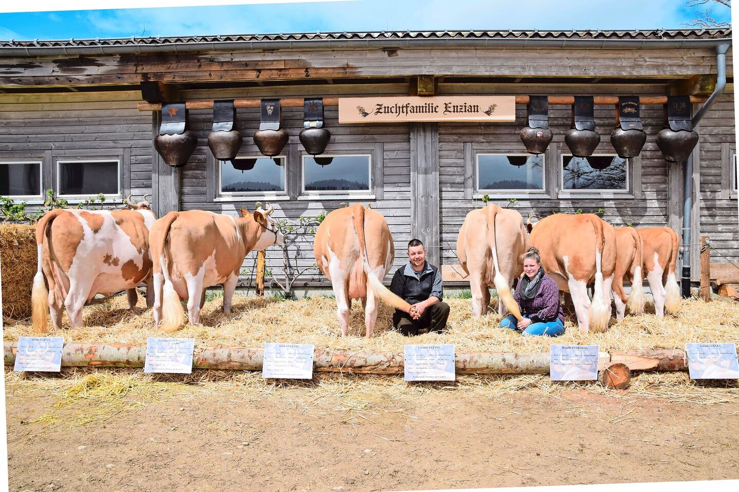 Für Christian und Laura Wüthrich aus Les Prés-de-Cortébert im Berner Jura war es die erste Zuchtfamilienschau, die sie zeigen konnten. Ihre Stammkuh Enzian präsentierte an der Schau sechs Töchter. Der schön hergerichtete Schauplatz war ein richtiger Augenschmaus. Die reine Simmentalergruppe überzeugte mit ihren hervorragenden Typeigenschaften und ihren starken Fundamenten.