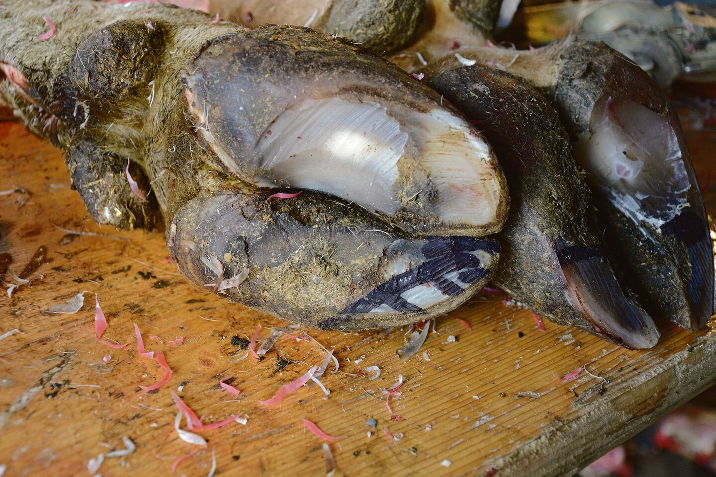 Bei einer zu langen Klaue hingegen verlagert sich das Gewicht nach hinten. Der hintere Teil des Klauenbeins drückt auf die Lederhaut, was eine Lahmheit verursachen und Entzündungen begünstigen kann.