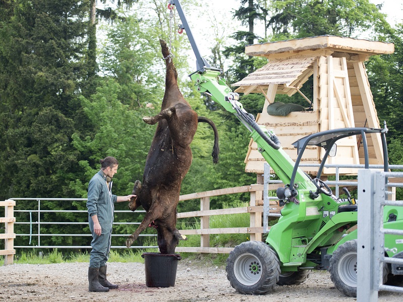 Bei der Weideschlachtung entfalle der enorme Stress durch das Separieren aus der Herde, den Transport, die fremde Umgebung und schliesslich die Fixierung für den Bolzenschuss. Weniger Stress unmittelbar vor und während dem Schlachtprozess bedeute immer auch eine verbesserte Fleischqualität.