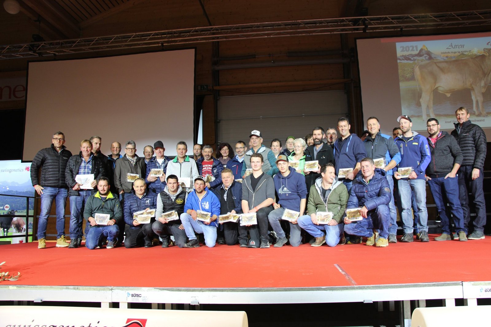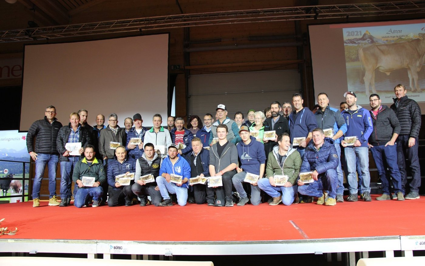 Mehr als 100 Stierenzüchter wurden im Anschluss der Delegiertenversammlung (DV) am 25. November 2021 von Swissgenetics geehrt. Als Geschenk überreichte Swissgenetics den Züchtern eine Stallplakette mit dem Bild des Stieres, den die Züchter Swissgenetics überlassen hatten. Von diesen Stieren wurden von Swissgenetics erfolgreich Samendosen in den Markt gebracht. Voller Stolz haben die Stierenzüchter die geschenkten Plaketten am Stall angebracht, so dass alle Besucher sehen, dass aus diesem Stall Stiere stammen, die über die künstliche Besamung als Samendosen erhältlich sind.