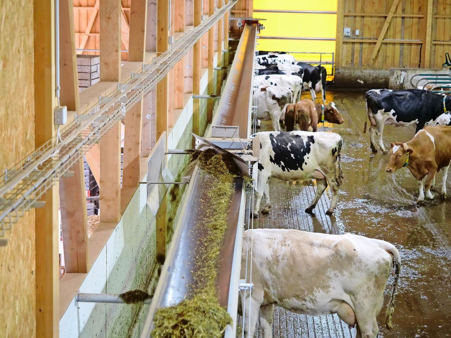 Das nun montierte Band legt den Kühen zehnmal pro Tag frisches Futter vor. Futterreste bleiben dabei fast keine mehr übrig. Gefüttert wird vor allem Silage. Dies setzt aber auch voraus, dass das Futter möglichst sauber und ohne Schimmel in den Stationärmischer gelangt, denn «alles, was in der Totalmischration landet, geht auch durch den Magen der Kuh», erklärt Martin Blaser.