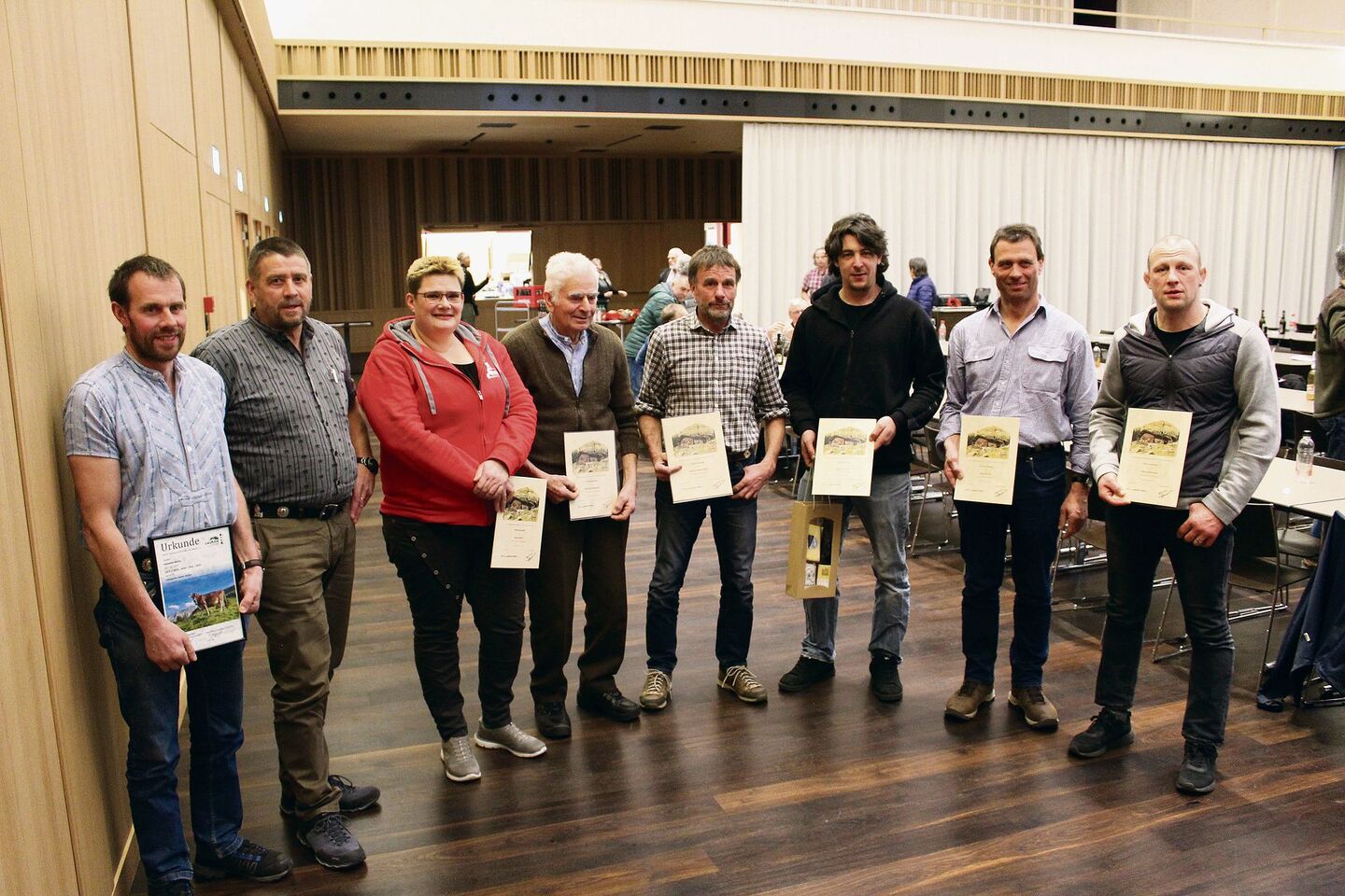 Die Alpkäser Martin Gasenzer und Fredi Steiner wurden für fünf Jahre beste Käsequalität ausgezeichnet. Ein gebührender Dank ging an die Alpfunktionäre René Kurat, Hans Sturzenegger, Meinrad John und Werner Eggenberger. Sie haben massgeblich dazu beigetragen, dass die Alpwirtschaft in der Region erhalten bleibt.