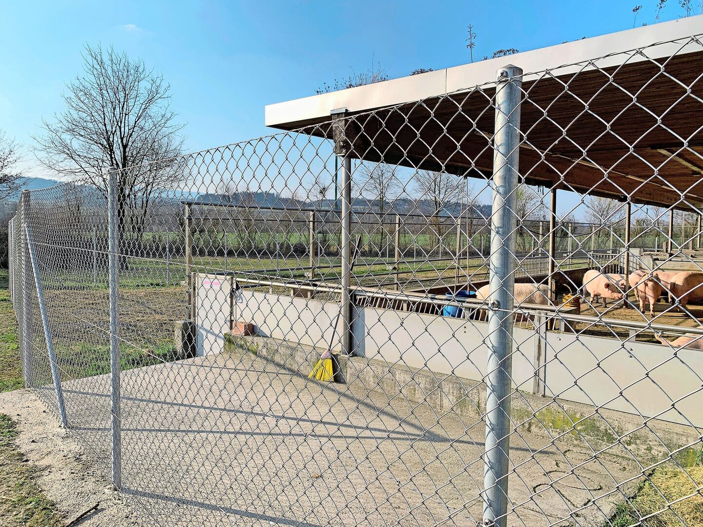 - Sofern Auslauf vorhanden: wildschweinsicher umzäunt (kein Nase-Nase-Kontakt möglich; kein Durchschlupf von Frischlingen möglich; wenn doppelte Umzäunung nötig, dann mind. 1,20 m hoch (empfohlen 1,50 m), Maschendraht oder ähnliches; kein Elektrozaun)