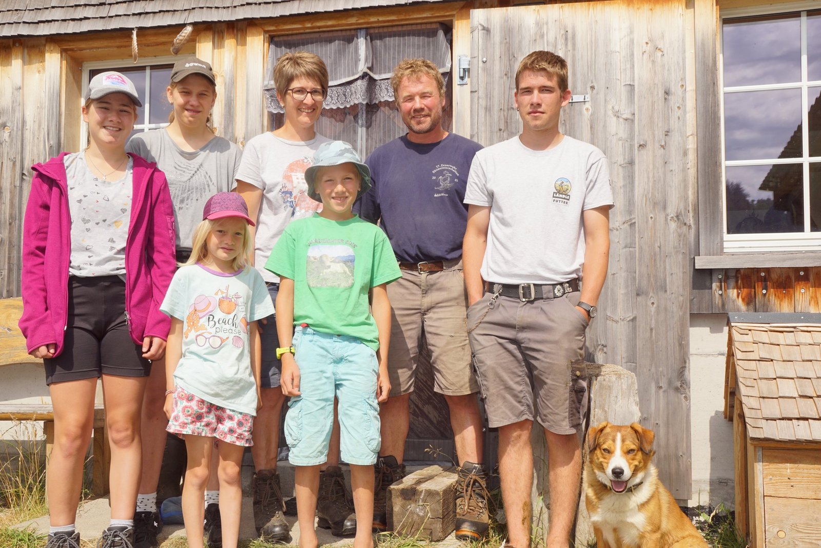 Familie Beni und Antonia Wenk mit ihren fünf Kindern sowie die Grosseltern Josef und Agnes Wenk bewirtschaften als Pächter der Ortsgemeinde Alt St. Johann im Obertoggenburg gemeinsam die Alp Hintergräppelen auf 1’300 m ü.M. Die Grosseltern sorgen vor allem für das Vieh, während sich die junge Familie um das Zäunen und die Weidepflege kümmert, im Talbetrieb das Heu einbringt und die Schweine versorgt. Morgens um viertel vor fünf Uhr beginnen Josef und Agnes ihre Arbeit im Stall.