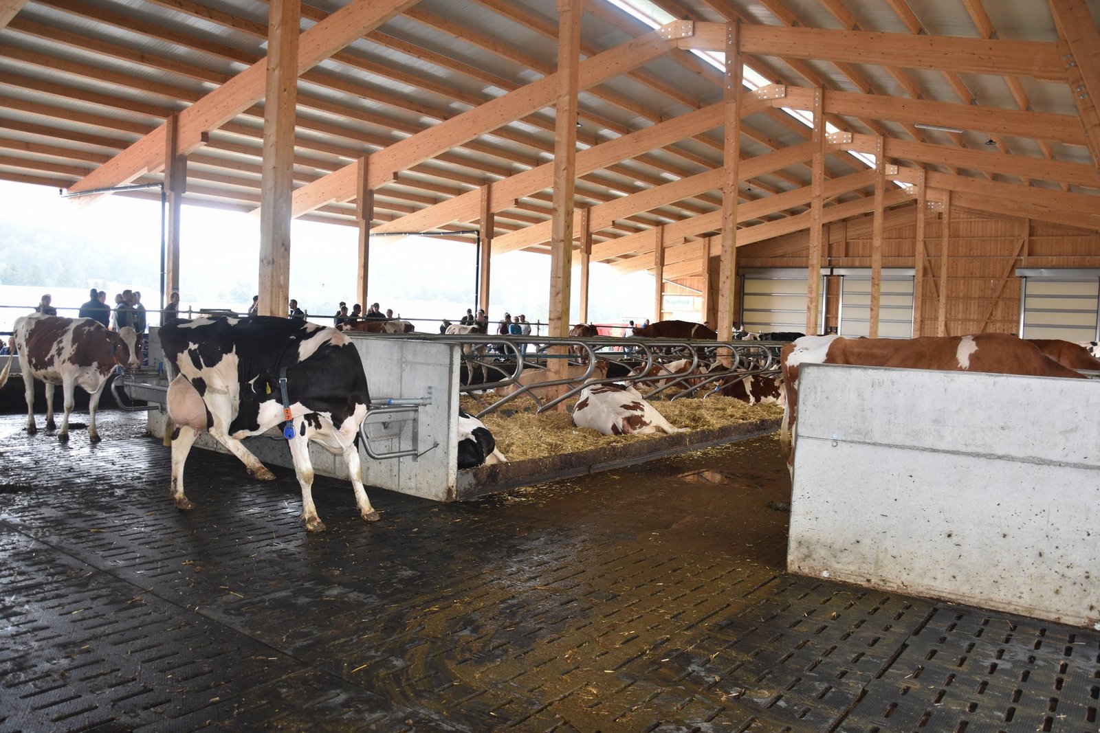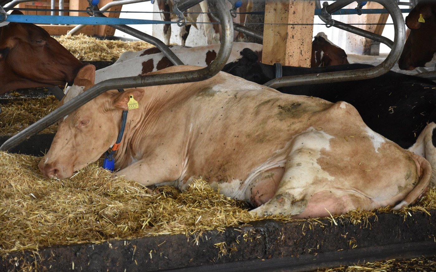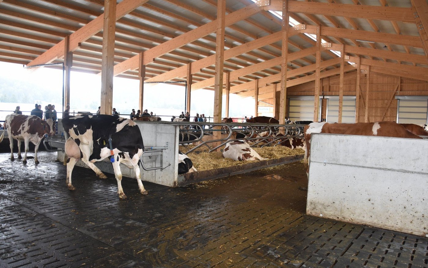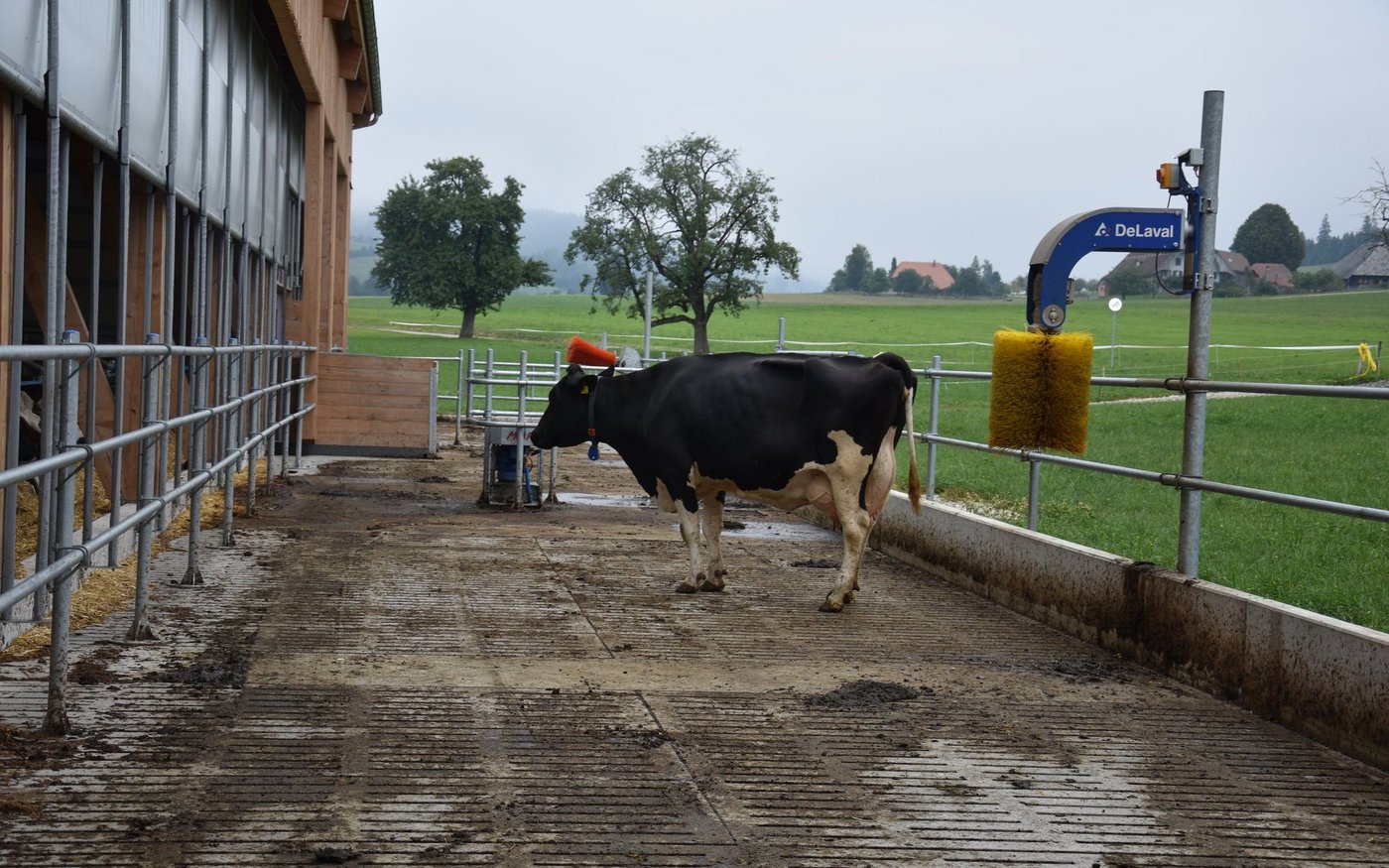 Obwohl der Stall mit 75 Liegboxen, noch nicht ganz ausgelastet ist, fühlen sich die 45 Kühe darin «sauwohl». Der Stall zeichnet sich aus durch viel Platz, viel Licht und viel frische Luft. Auch dem Tierwohl wurde grosse Beachtung geschenkt. Die Liegeboxen sind so ausgerüstet, dass die Kühe vorne am Kopf, viel mehr Bewegungsfreiheit haben. Auch die neuen Liegeboxenbügeln, sorgen für ein leichteres Aufstehen. Alle Kühe haben den Umzug vom Anbinde- in den Laufstall ohne Probleme überstanden. Keine einzige Kuh musste deswegen den Betrieb verlassen. Sogar die älteste, ein 14-jährige Kuh, fühlt sich im neuen Stall wie eine Zweijährige. Wer den neuen Stall bei Haslebachers noch sehen möchte, hat bis am Sonntagabend, denn 7. August, noch Zeit. Ein Besuch lohnt sich allemal.