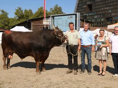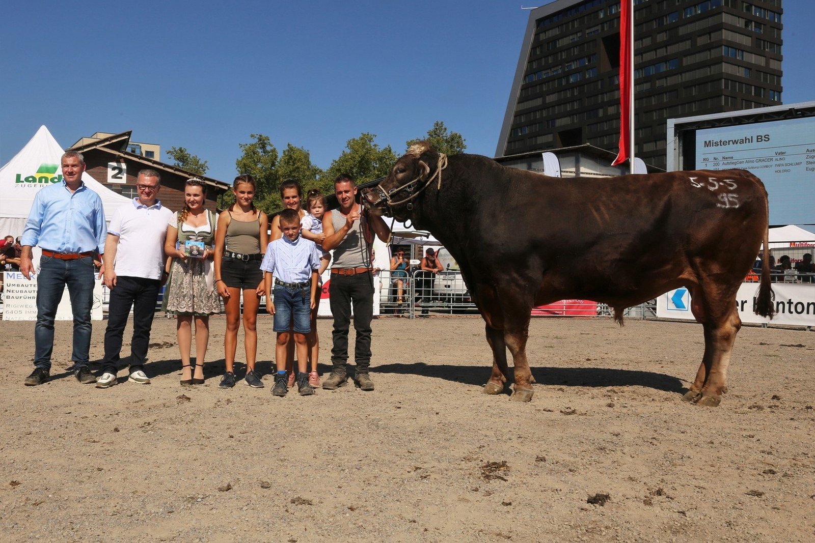 Aber nicht nur das, der grossgewachsene Alino-Sohn präsentierte sich auch als sehr korrekter Stier und wurde zum Mister ZM Zug BS gewählt. «Ein Stier mit sehr viel Kapazität, zudem überzeugt er in der Becken- und Brustbreite», so der Kommentar von Stefan Hodel, der seinen letzten Einsatz als Chefexperte an einem Stierenmarkt hatte. Siegermuni-Besitzer Kevin Züger freute sich über den Erfolg, der Stier überzeuge auch als starker Vererber: «Die Nachkommen aus Gracer gefallen bisher sehr.» Die Kuhfamilie und insbesondere die Stierenmutter Calvin Grace, welche aus Österreich stammt, seien vor vier Jahren für den Ankauf von Gracer ausschlaggebend gewesen. Ähnliches gilt auch für Lionel, den Junior-Mister ZM Zug BS: Seine Mutter Glenn Laos ist ebenfalls eine starke Schaukuh und auch sie kommt aus Österreich. Lionel selber ist ein Phil-Sohn und wurde von Patrick Risi, Buochs NW, ausgestellt.