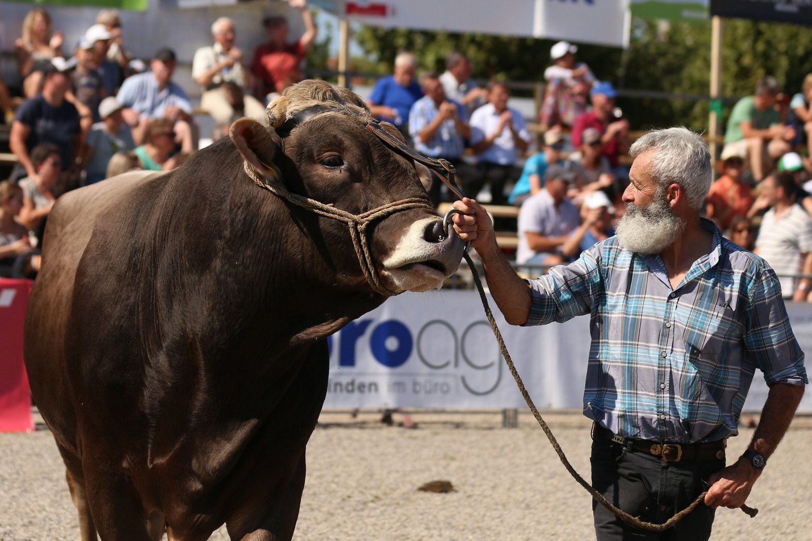 Die Stierenausstellung fand dieses Jahr mit einem überarbeiteten Konzept statt. Ziel war, die Standzeiten der Stiere auf dem Platz zu verkürzen und so dem Tierwohl mehr Rechnung zu tragen. «Angesichts der sehr hohen Temperaturen, die an diesem Spätsommertag auf dem Areal herrschten, war das sicher der richtige Entscheid», zog Braunvieh-Schweiz-Direktor Martin Rust ein erstes Fazit. Die Stiere wurden zudem erstmals in zwei Ringen öffentlich vorgeführt, rangiert und kommentiert.