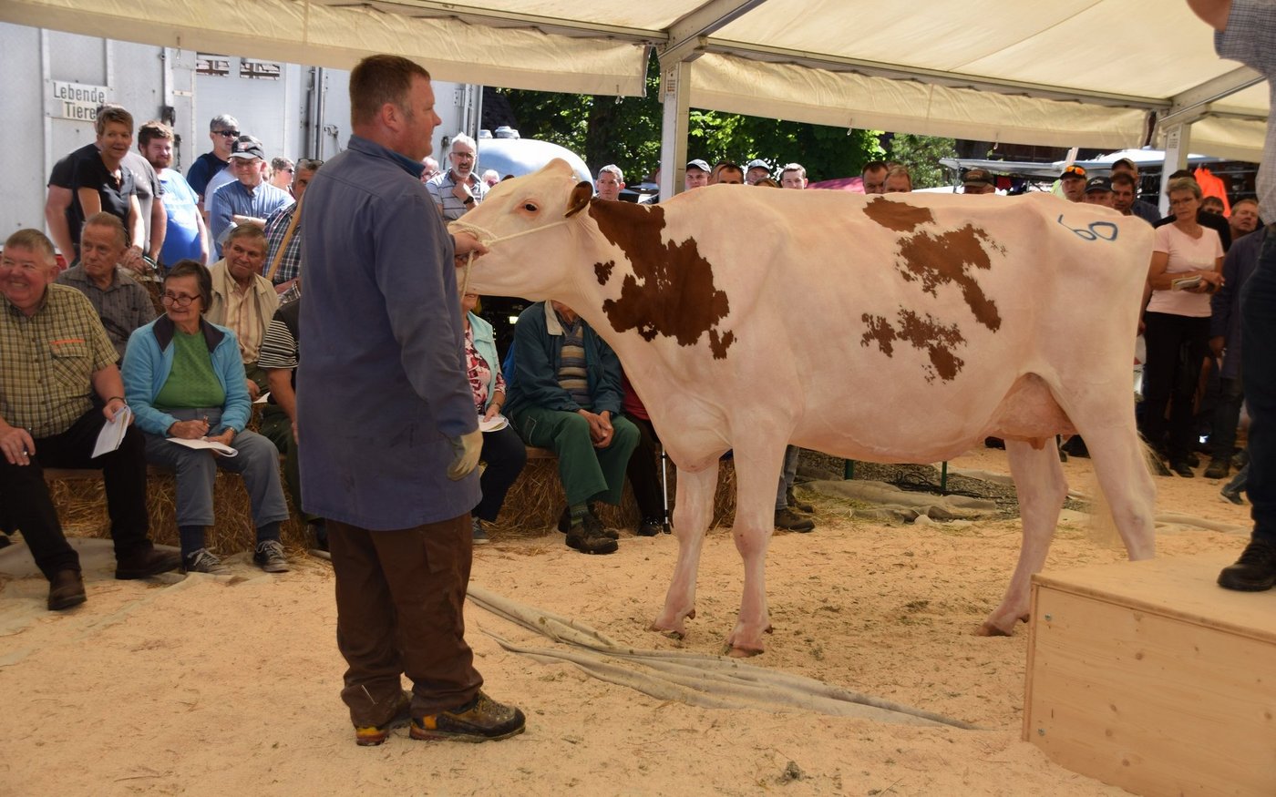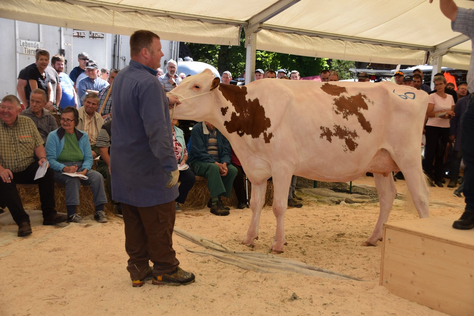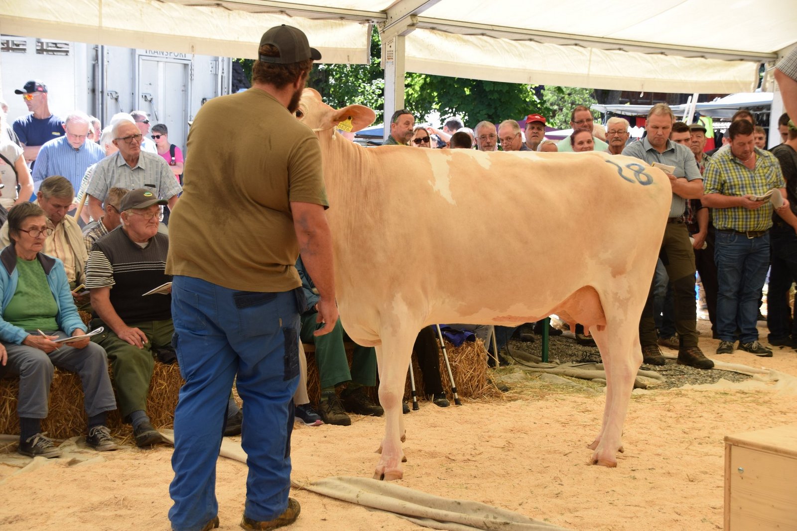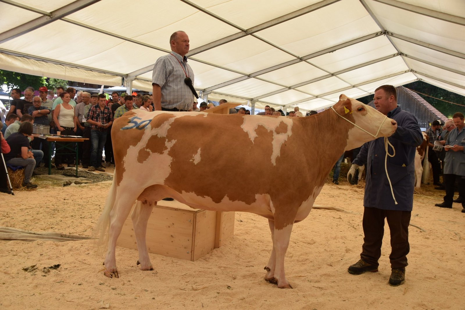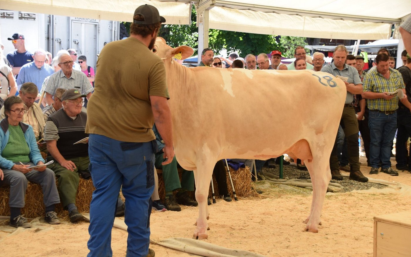 Ins Schwärmen kam der Auktionator Andreas Aebi als das Katalognummer 28 den Ring betrat. Suleiko Meieli, eine SF-Bio-Kuh von Walter Siegenthaler aus Schangnau BE, punktiert mit dem Maximium von 44 44 90, sehr gut ausgewiesen und frisch in die zweite Laktation gestartet. Diese Schönheit löste ein richtiges Bieterduell aus. Schlussendlich ging Meieli für 6000 Franken an einen bekannten Emmentaler-Händler und Züchter. Mit 6000 Franken erzielte diese Traumkuh auch den Tageshöchstpreis.