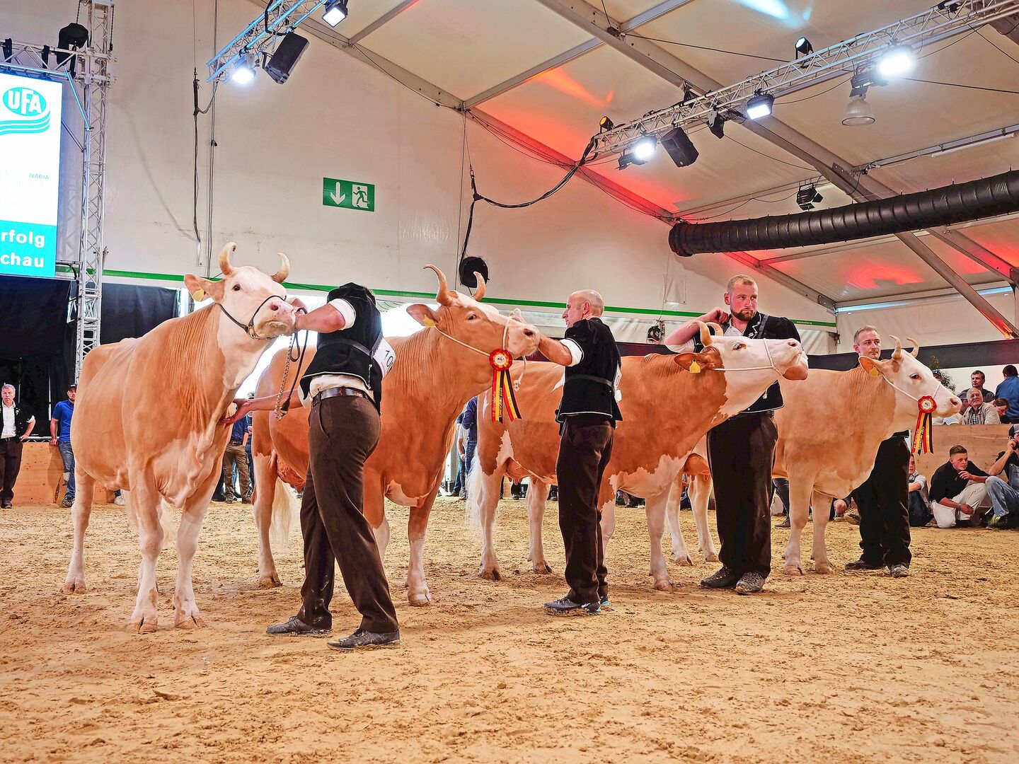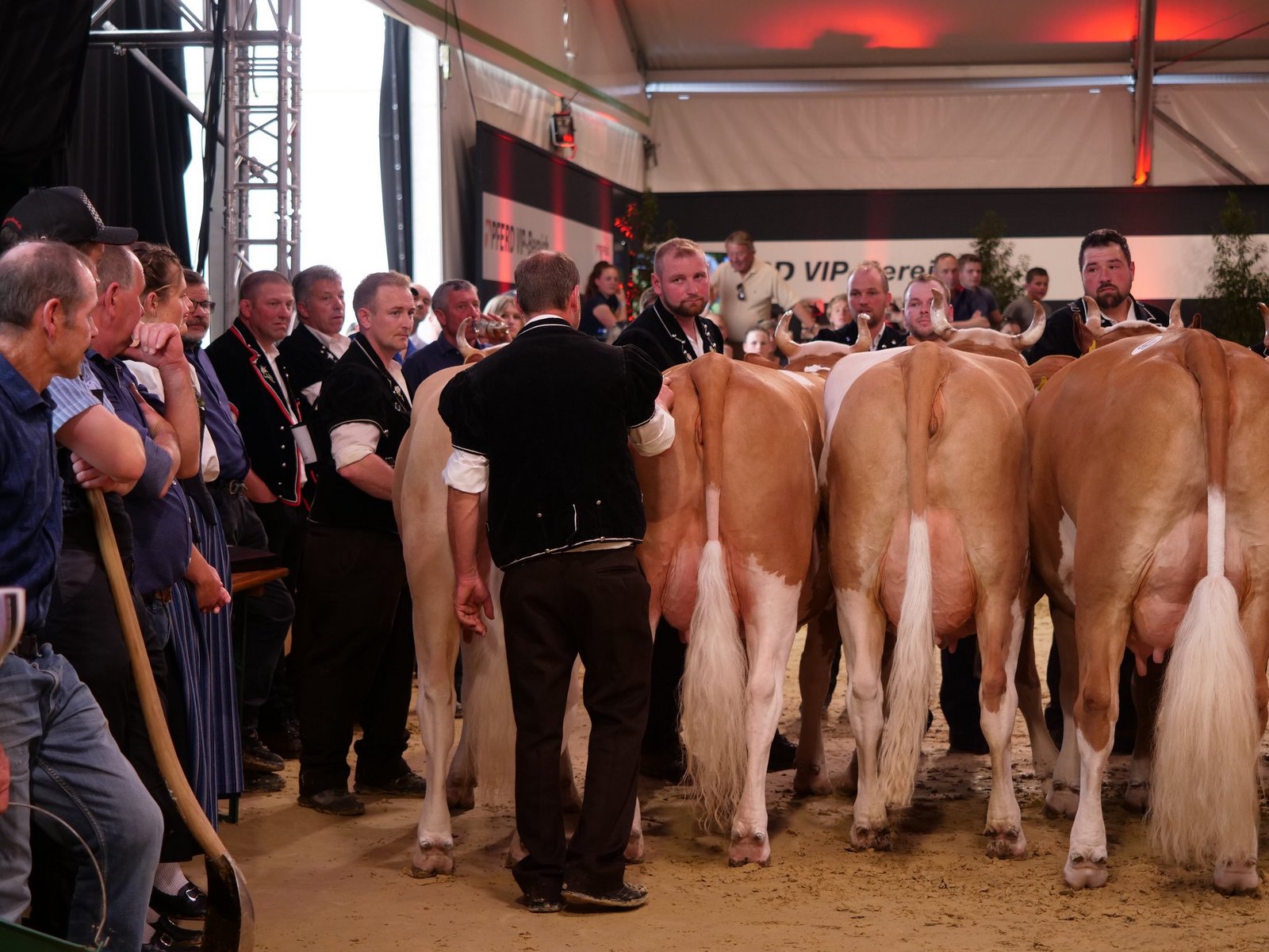 In den anschliessenden Miss- und Schöneuter-Wahlen wählten die Richter von jeder Rasse vier Tiere für die engere Wahl aus. Bei den Simmentalern durften Aladin Heidi von Ueli Schärz aus Aeschi b. Spiez, Stalden Brisago Volta von Peter Brügger aus Frutigen, Fantast Elodie von Familie Schmied aus Guggisberg und Amur Meieli von Andreas Steiner aus Ried im Ring bleiben.