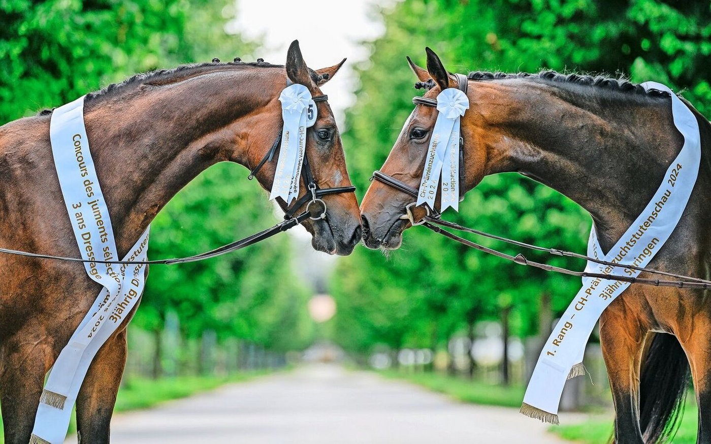 Insgesamt 35 der dreijährigen Stuten wurden mit dem Titel «Prämienzuchtstute» ausgezeichnet. Siegerin bei den springbetonten Stuten und neue Miss Schweiz 2024 wurde Diva Deluxe CH (Diacontinus - For Edition - Grand Cru) des Züchters und Besitzers Theo Banz. Als beste dressurgezogene Stute gewann Darleen sz CH (Sweet Hero - De Niro - Don Gregory) aus der Zucht von Christoph Suter, in Besitz von Elisabeth Rademaker.