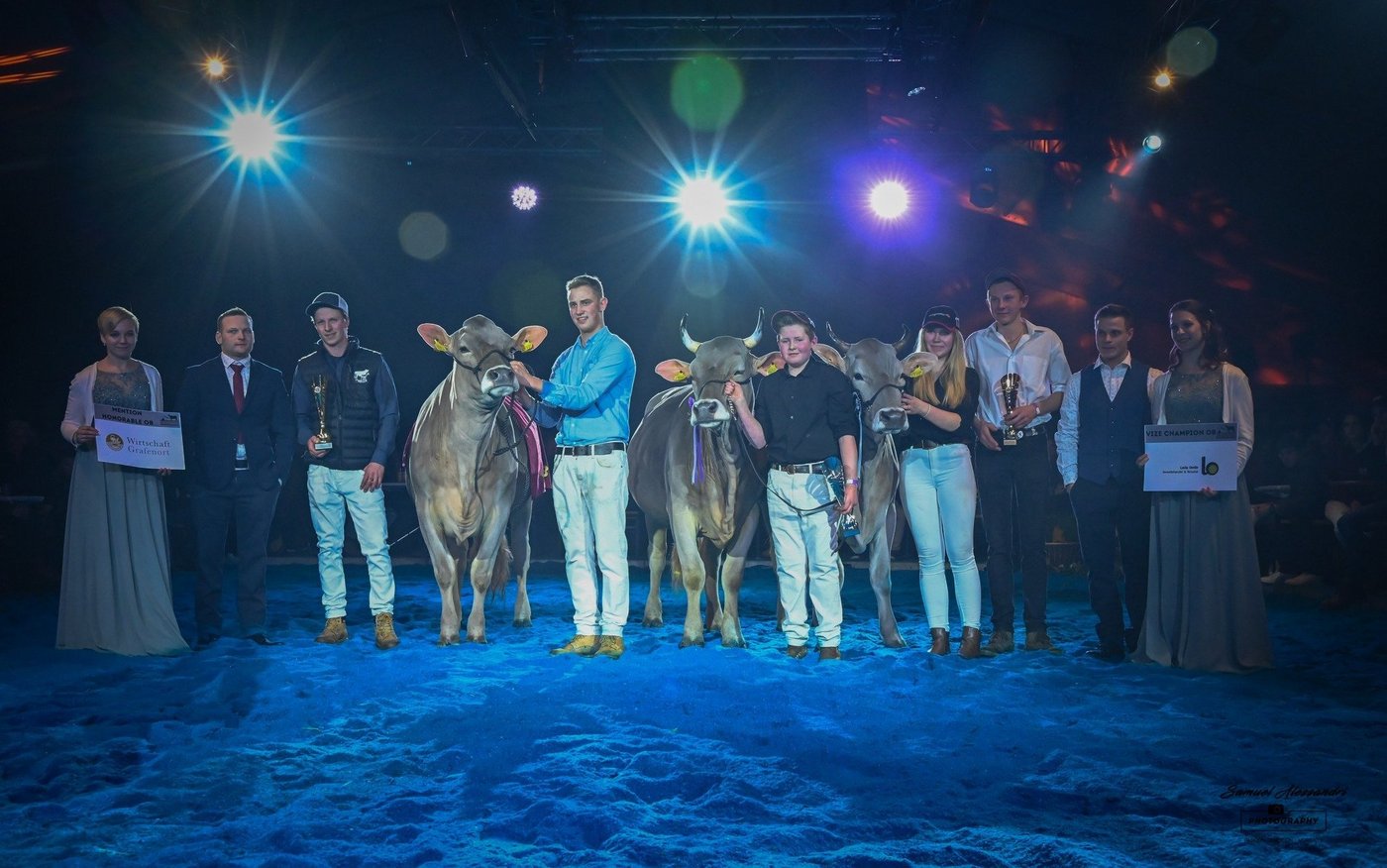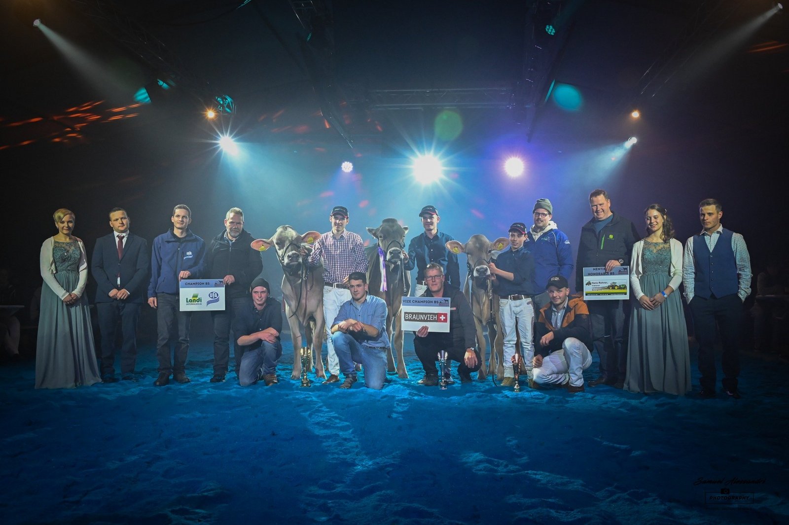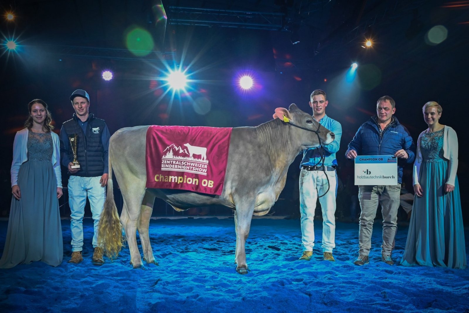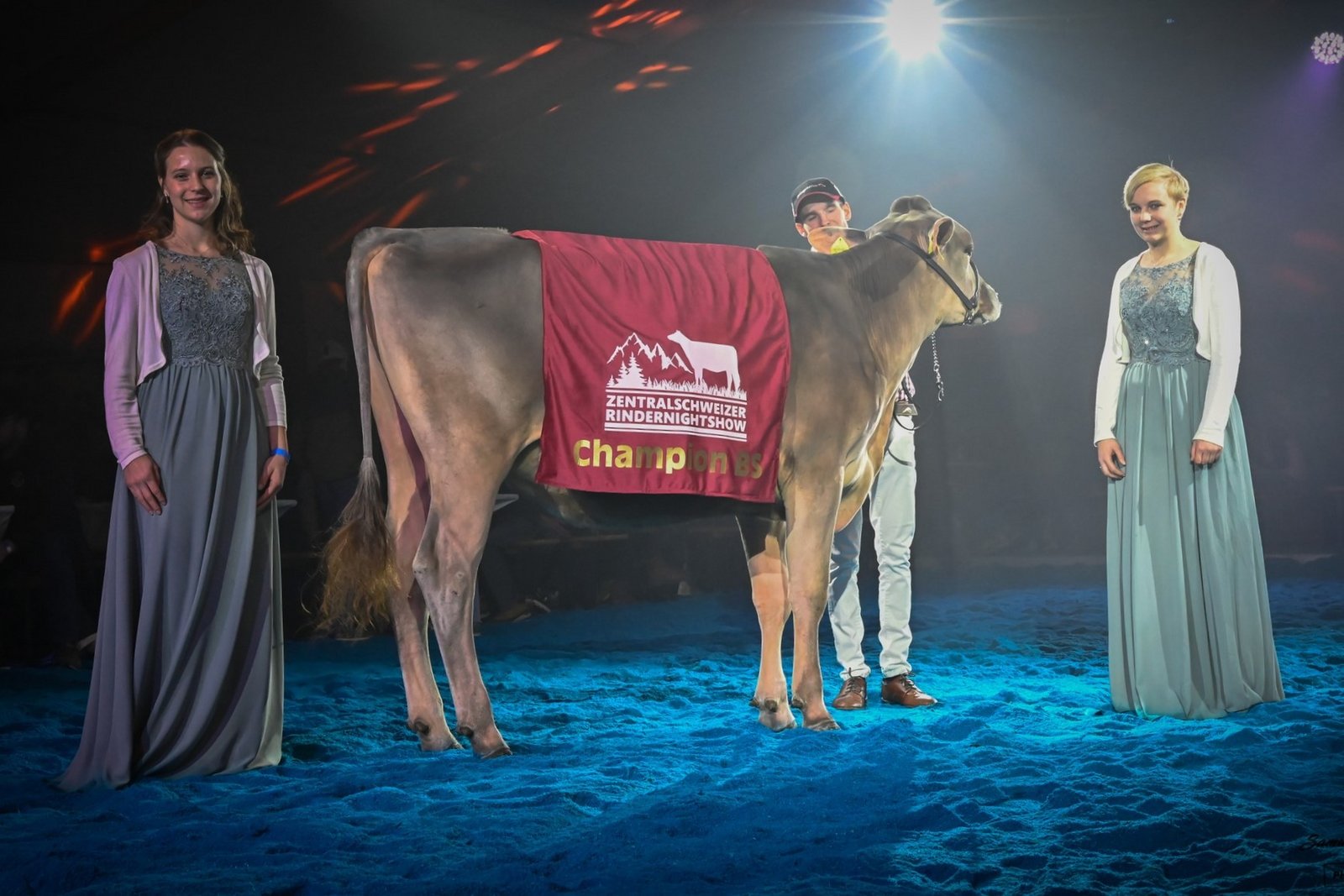 Kurz vor dem Jahresabschluss fand die Zentralschweizer Rindernightshow statt. Nach einem Unterbruch von sechs Jahren organisierten die Ob- und Nidwaldner Jungzüchter die Rinderausstellung auf dem Areal Chilcherli beim Flugplatz Alpnach. Das OK unter der Leitung von Präsident Fabian Hurschler durfte eine grosse Zahl an Besuchern und Zuchtinteressierten aus dem ganzen Braunviehgebiet begrüssen. Nicht nur die Zuschauer hatten teils lange Anfahrtswege, auch einzelne Ausstellungstiere kamen von weit her. So zum Beispiel Bärtsch’s BS Huge Sg Ulessa von Flurin Bärtsch aus Furna GR, welche nach ihrer Ehrenerwähnung an der Junior Expo Aargau vor gut sechs Wochen nun auch in Alpnach gefiel. Ulessa überzeugte einmal mehr und gewann ihre starke Abteilung vor Studefuchs Sinatra Sangria von Simon Gwerder, die Vize Miss der Schwyzer Junior Show.