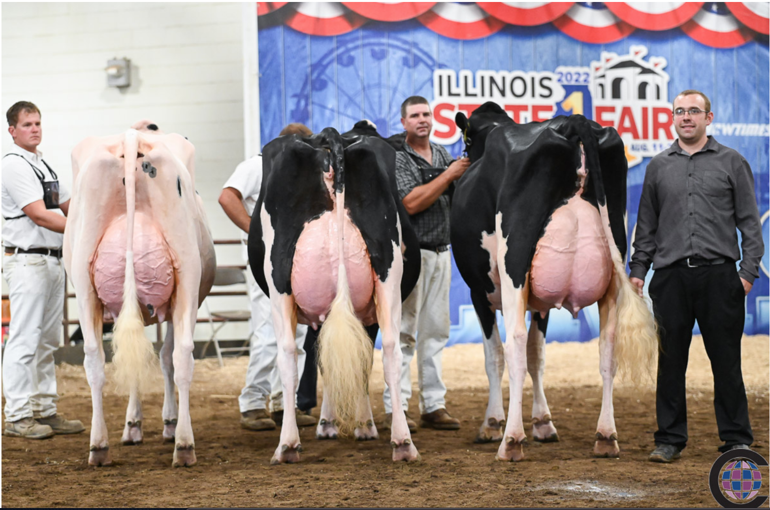 Zuerst gewann sie die Klasse der jüngeren Dreijährigen, dann trumpfte sie bei der Championwahl noch einnmal obenaus: Die Rede ist von der Siegerkuh an der Illinois State Fair Holstein Show B-J-Grove Unix Cherokee von Kasey Clanton. Sie verwies im Finale Go Make Dempsey Circle von Tyler Carter, Brett Richter & Dylan Reed, auf den Reserve-Platz. Mention Honorable wurde Mc-Country Denver Ingrid von Tyler Carter. Viele gute Platzierungen erreichten die Stiere Denver, Dempsey, Unix, Doormann und Unstopabull. Dieser Stier stellte mit Merrillea Un Cabernet-Red (Unstopabull)auch die Junior-Champion.
