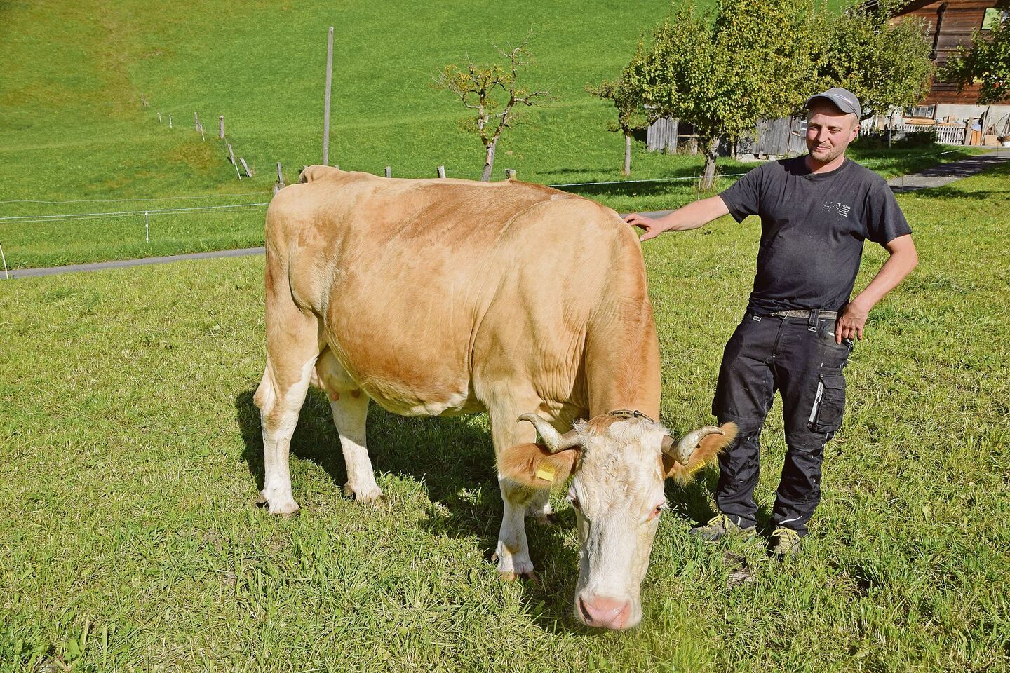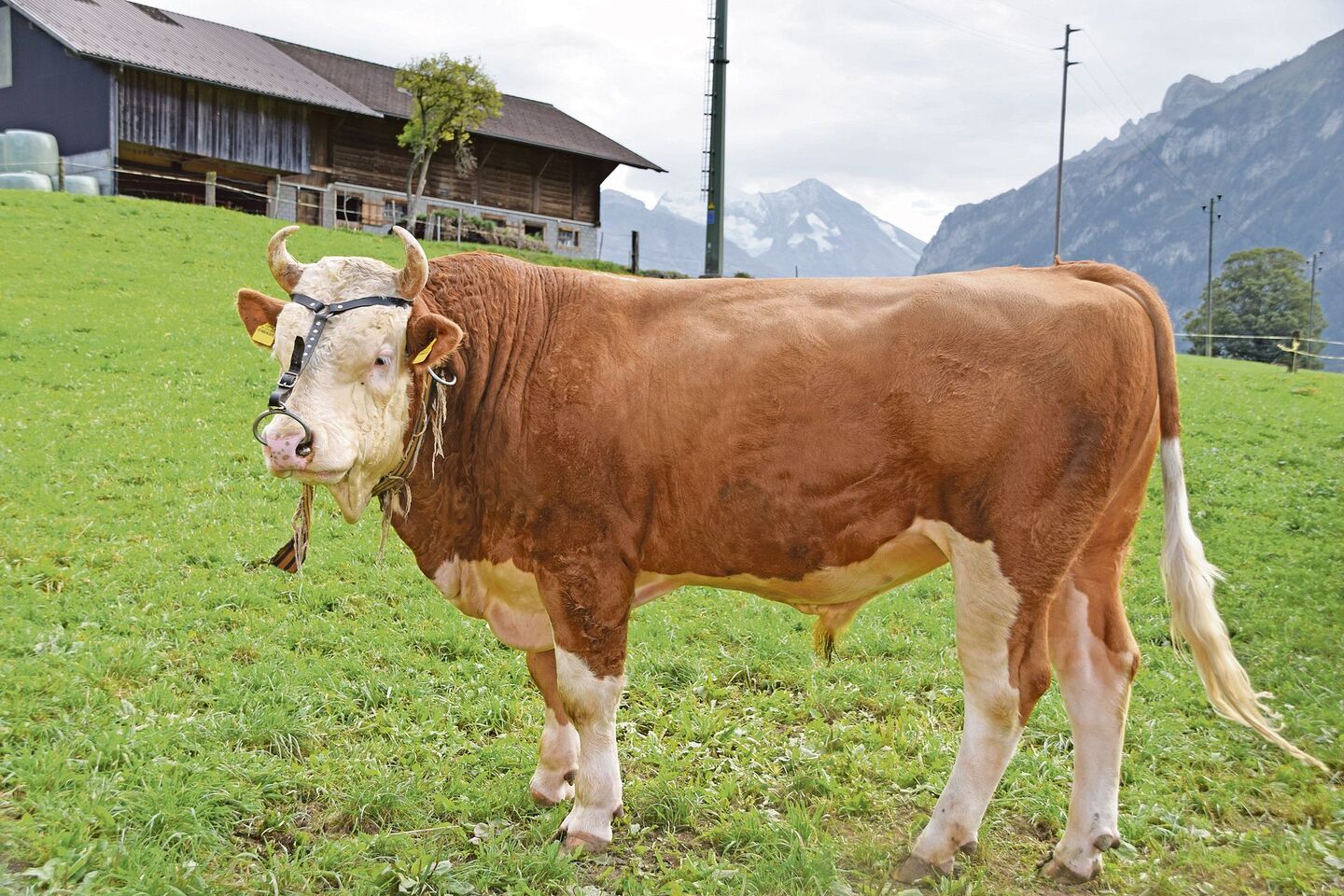 Beim Besuch in Frutigen auf dem Heimbetrieb war die Simmentalerherde gerade auf der Weide. In den Sommermonaten sind die Galtkühe auf verschiedenen Alpen verteilt, die Melkkühe sind in dieser Zeit in Kandergrund auf der Sommerweide von Raubers. Im Sommer besteht der Rindviehbestand aus ungefähr 26 Kühen, im Winter wächst er auf 36 heran. «Komm, wir schauen uns gleich den Grosssohn von Tiffany an», schlägt Markus Rauber vor. Mit seinen zwei Jahren ist der Cyrill-Sohn Tornado ein Prachtexemplar. Stark im Fundament, stark in der Lende und stark im Becken. «Den setzen wir zünftig ein», sagt der Reinzüchter überzeugt. Rauber setzt seit Jahren auf den Natursprung, der Erfolg gibt ihm recht. Überzeugt ist er von seinem Tornado, überzeugt von dessen Mutter Balu Tina (55 55 98/EX 93). Dahinter kommt keine Geringere als seine Stammkuh Tiffany. «Tina wurde als Rind mit VG 87 beschrieben, und ich glaube, Tina war seinerzeit die höchstbeschriebene Simmentaler-Erstlingskuh», weiss Rauber noch.