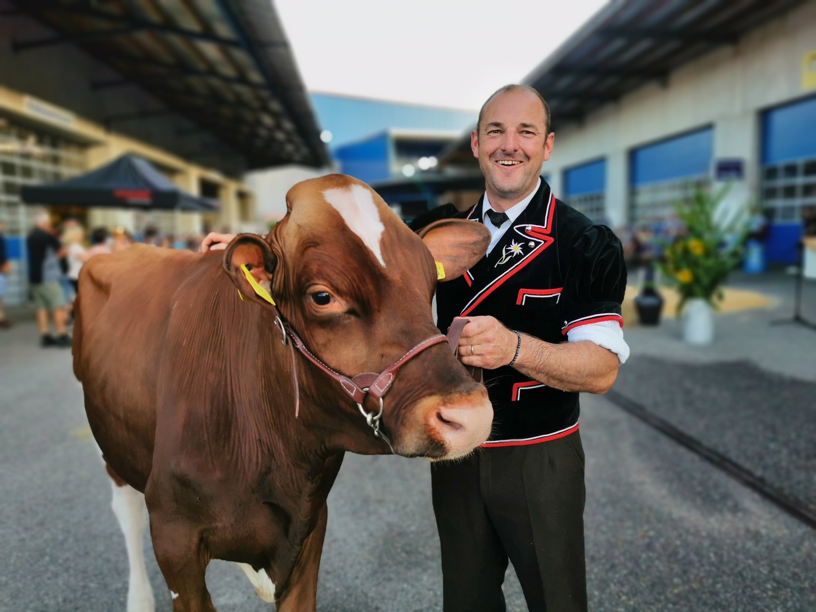 Unter Anwesenheit von Gotte Aline Langenegger, Moderatorin Tele Bärn und Radio Bern 1, und Götti Matthias Aeschbacher, Eidgenössischer Kranzschwinger, hat eine illustre Gesellschaft die Taufe von Bond vom Dicki begleitet. Bond ist ein eineinhalbjähriger Stier aus dem Stall von Andrea und Martin Jaquemet, Hasle bei Burgdorf. Der Muni hatte keinen weiten Weg zur Taufstätte des Muni-Sponsors, der Buri AG in Hasle. Hier, auf dem Dicki-Areal stand er dann für das Fotoshooting während der Feierlichkeiten geduldig zur Verfügung.