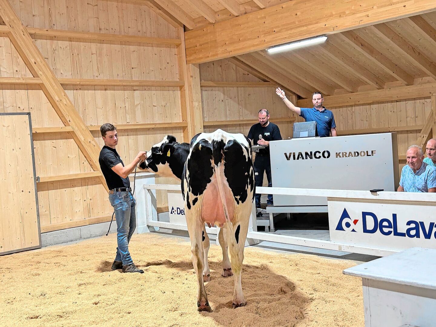 Der Auktionsraum in frisch erstellten Vianco-Marktplatz in Kradolf platzte bei der Eröffnungsauktion aus allen Nähten. Zusätzliche Stühle und Bänke reichten nicht, sodass auch die Stehplätze entlang den Wänden voll besetzt waren. Die Vianco versteigerte 41 Kühe. Der durchschnittliche Verkaufspreis lag bei Fr. 4022.50. Den Höchstpreis von Fr. 5400.– erreichten gar zwei Kühe: zum einen Schönenberg Haland Estella mit 30 kg und zum anderen Prime vom Züchter und Eigentümer Alois Zimmermann. Zur Versteigerung kam ein einziges Rind. Hilona vom Züchter und Eigentümer Bernhard Kobler-Benz aus Oberriet SG löste Fr. 3800.–. [IMG 8] Stefan Hodel und Auktionator Michael Rüegsegger zeigten sich erfreut. «Nach so vielen Jahren endlich wieder eine richtige Auktion in Kradolf. Es hat sich gelohnt», so Hodel, und Rüegsegger ergänzte: «Es hatte tolle Kühe. Verkäufer, Käufer und wir sind mehr als zufrieden.» Erstmals konnte am Vianco-Standort in Kradolf online gesteigert werden, was gut genutzt wurde. Die nächste Abendauktion mit Milchvieh findet in Kradolf am 29. Oktober statt.
