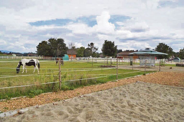 Ein Aktivstall, auch Bewegungsstall genannt, ist mehr als nur ein Stall. Er besteht aus vielen Elementen, wie Liegebereich, Fressplätze, Wälzbereiche, Schattenplätze, eine Wasserfurt etc., die auf einer grossen Fläche verteilt und durch eingezäunte Wege, sogenannte Trails, verbunden sind. Der Rundgang um den ganzen «Stall» beträgt in Heimenhausen 600 bis 700 m.