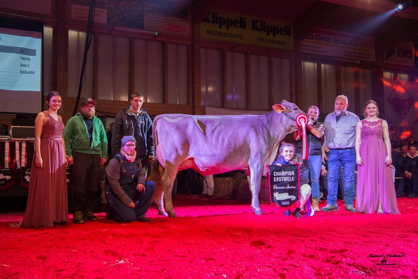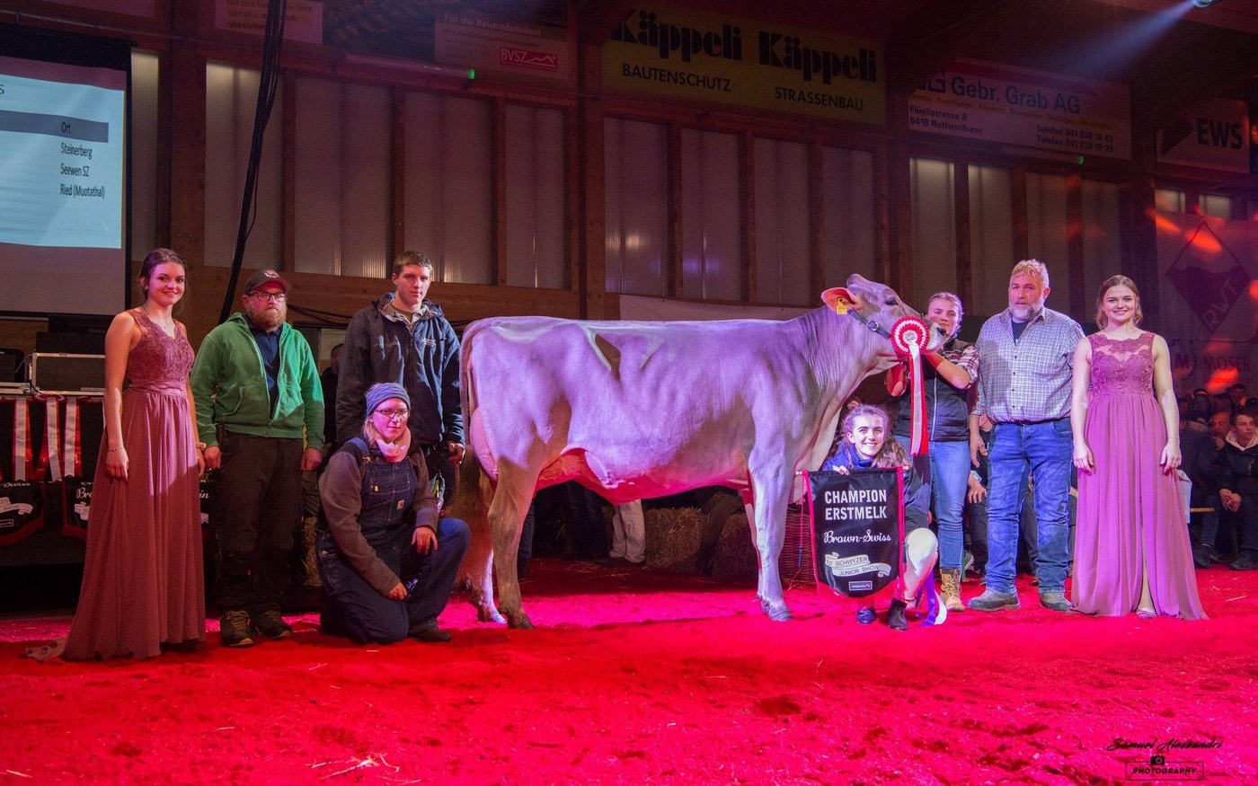 Bei den Brown Swiss Rindern holten die Muotathaler Jungzüchter einen Doppelsieg. Fabian Betschart stellte mit Gislerwaid Calvin Salvina die Champion, Simon Gwerder mit Studefuchs Sinatra Sangria die Vize. Janick von Rickenbach, Steinerberg komplettierte mit Pete Philippa das Podest. Auch bei den Holstein-Rindern präsentierte ein Muotathaler Jungzüchter das schönste Tier. Claudio Föhn holte mit der imposanten vomWeidhof Bad Dina den Sieg. Dina ist keine Unbekannte, so wurde sie Ende November an der 8. Ostschweizer Rindernightshow bereits Supreme-Champion über alle Rassen. Auch zur Vize Champion wurde ein Tier mit dem Präfix vomWeidhof gekürt: Chief Halleluja von Angela Steiner, der Präsidentin der Schwyzer Jungzüchter, gefiel dem Experten Dani Gisler. Honorable Mention wurde wie schon an der letzten Junexba in Mümliswil die elegante AL.Swiss Chief Dream-Love von Alain Lüthi, Pfäffikon.