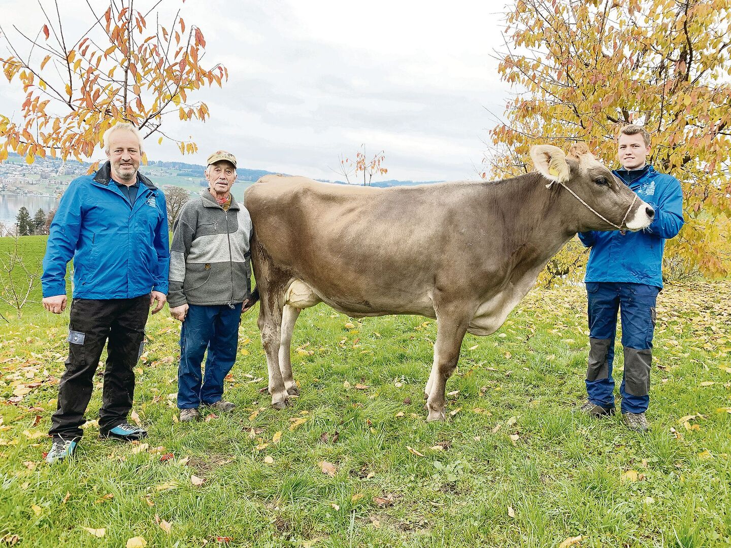 «Auf Badi sind wir stolz und mit ihm hatten wir grossen Erfolg», sagt Braunviehzüchter Albert Gössi von der Trottenmatt in Weggis. Der selber gezüchtete Stier geht auf den bekannten Biver zurück und sei ein fast perfekter Vererber in allen Kriterien gewesen. Einziger äusserer Makel war sein weisser Bauch, «sonst wäre der in die KB gekommen». Deswegen würden seine Nachkommen mit weissen Flecken am Bauch wohl kaum je im ersten Rang an Schauen stehen, obwohl sie sonst eigentliche Milchmaschinen seien, ergänzt Sohn Kilian.