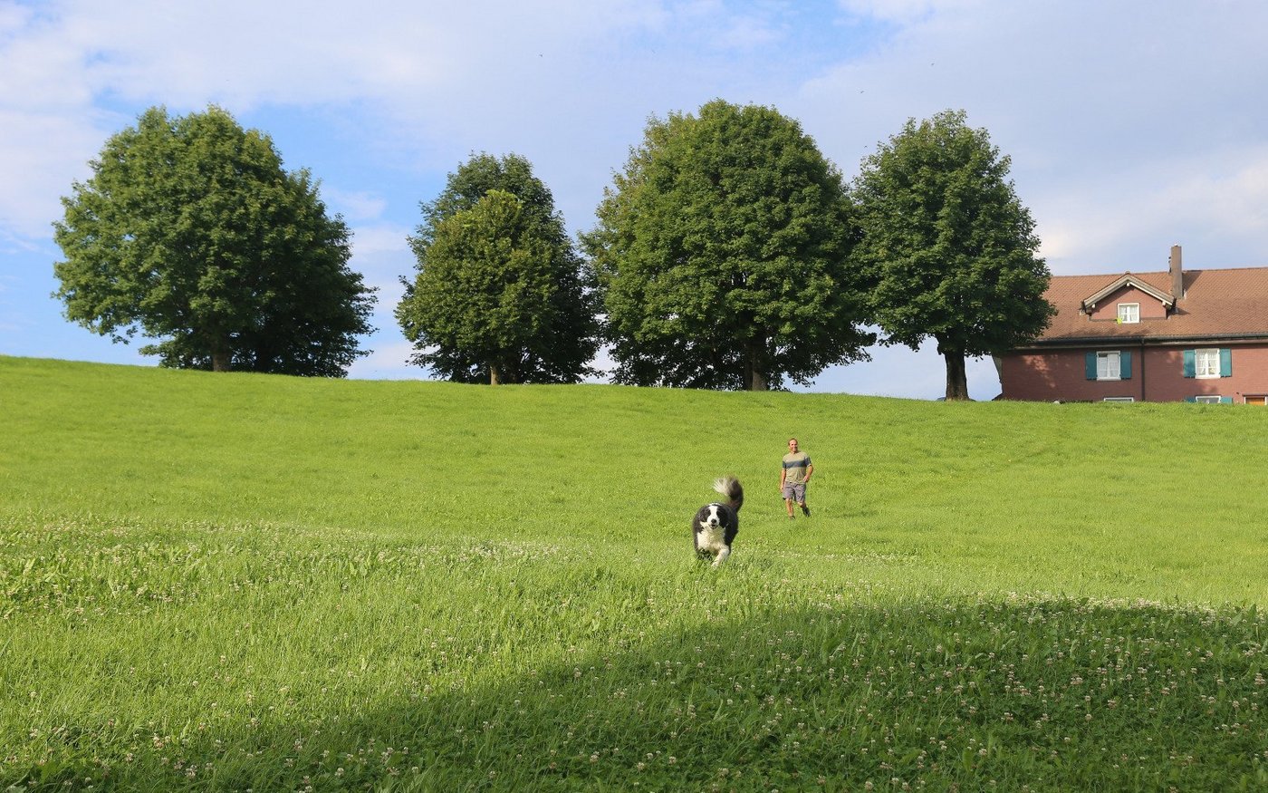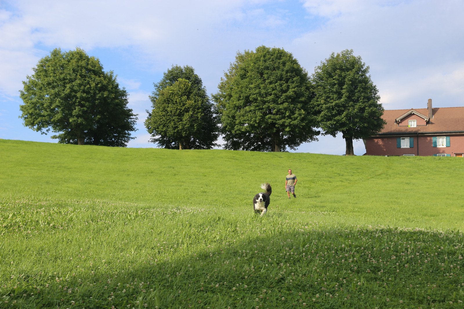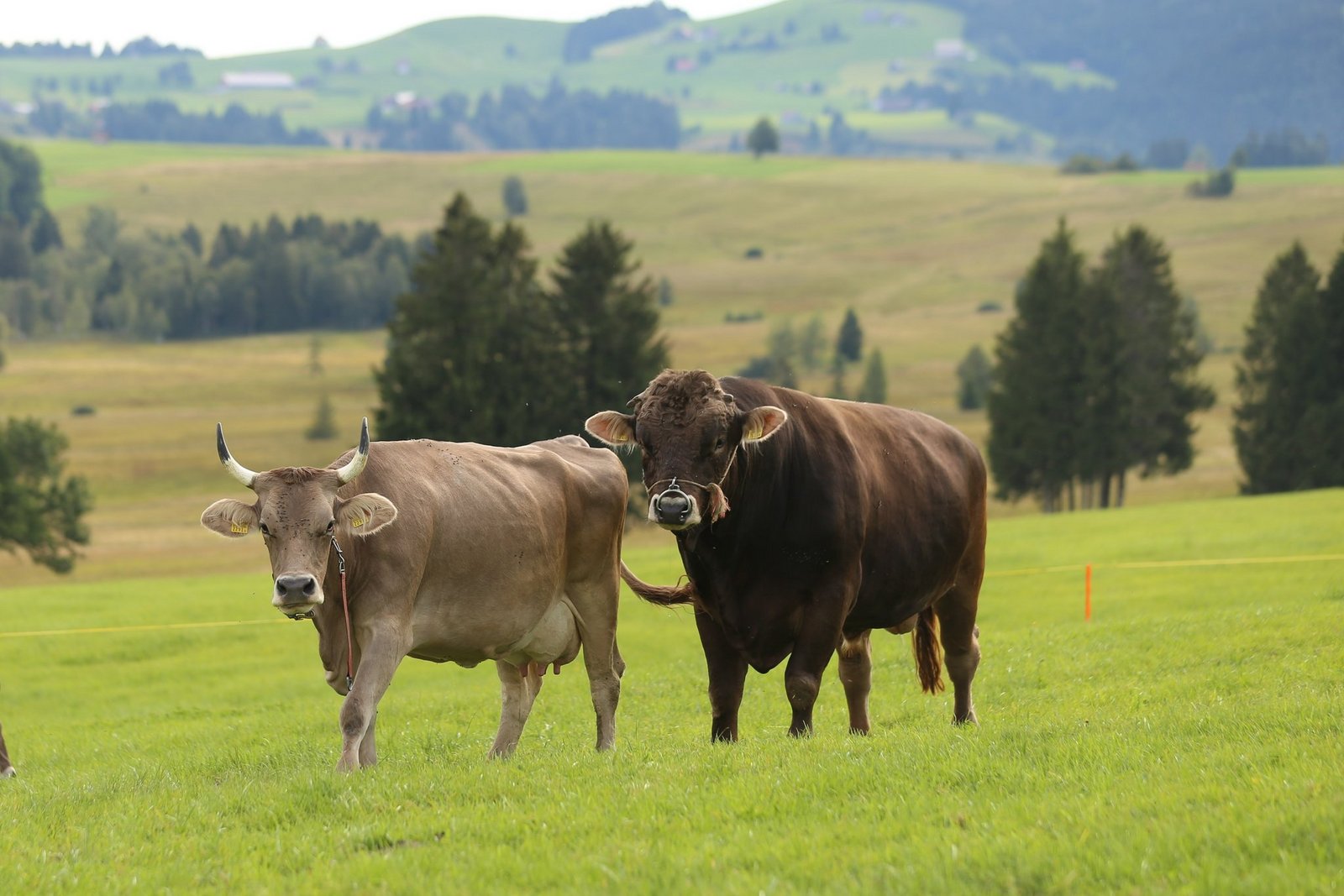 Neben den herrlichen Hornkühen zieht vor allem der Zuchtstier des Hofes Heumatt die Blicke der ausländischen Gäste auf sich. Insbesondere wenn dieser über eine so kapitale Erscheinung verfügt wie der aktuelle Muni: Der bald vierjährige Minor Sohn Morin bringt mit seinem ausgeprägten Fleischansatz gegen 1300 kg auf die Waage und läuft mit den rund 30 Kühen auf der Weide mit. Der imposante Stier wird voraussichtlich am 7./8. September am Stierenmarkt in Zug ausgestellt.