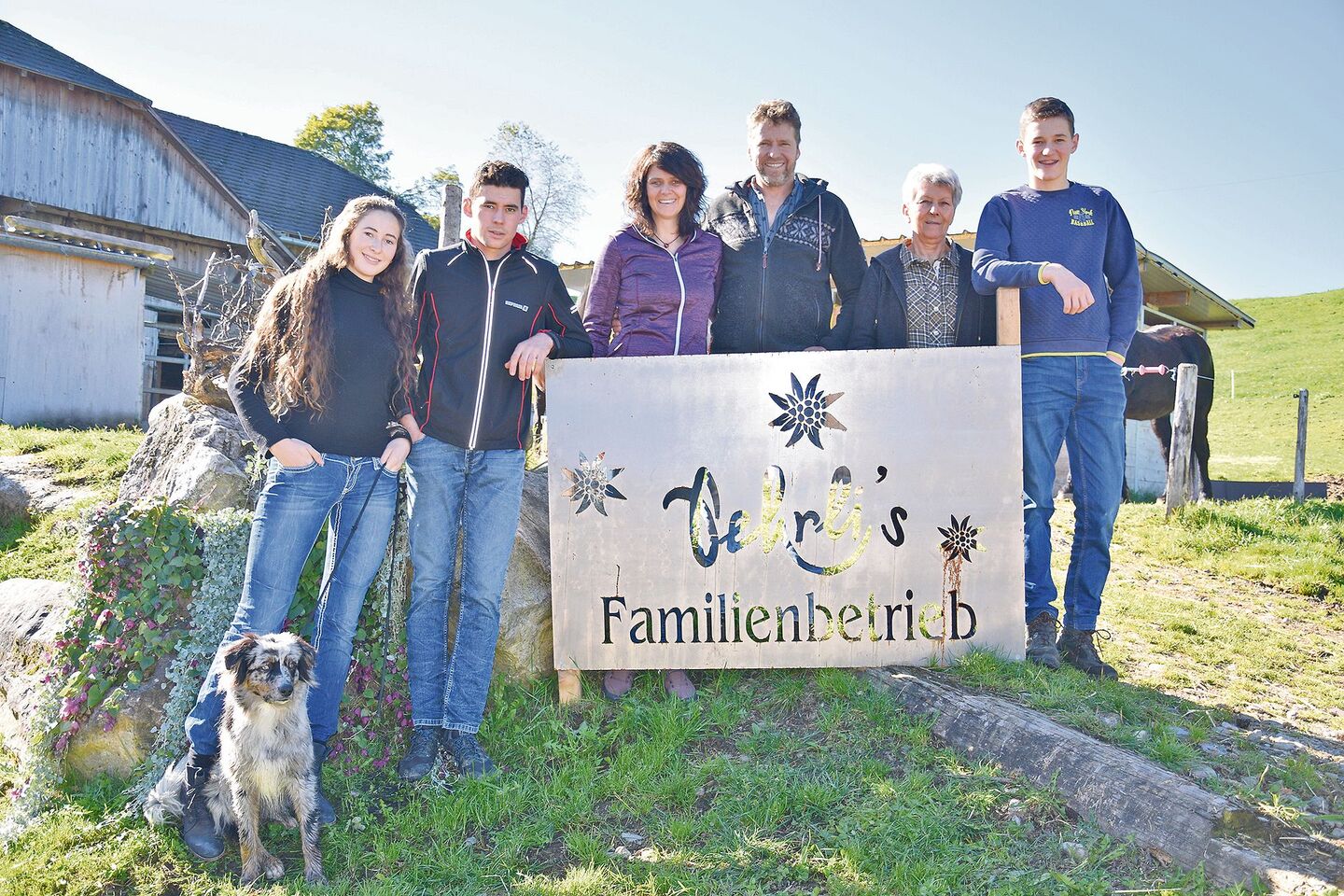 Leicht ist er nicht zu finden, der Betrieb von Familie Ferdinand und Barbara Oehrli in Reust. Eingebettet zwischen Wäldern und sanften Hügeln liegt er am Fusse des Sigriswilergrats in der Gemeinde Sigriswil im Berner Oberland. Oehrlis bewirtschaften diesen Bergbauernbetrieb erst in der dritten Generation. «1939 haben meine Grosseltern hier mit 1,5 Hektaren Land, einer Kuh, einem kranken Rind und einem Kalb angefangen», erzählt Ferdinand Oehrli. Heute bewirtschaftet die Familie 32 Hektaren LN; sie sind beteiligt an der Berggenossenschaft Tüelboden und melken zwischen 25 und 35 Kühe. Neben dem Betriebsleiterehepaar packen auch die drei Kinder sowie Elisabeth Oehrli, die Mutter von Ferdinand, im 3-Generationen-Familienbetrieb mit an.