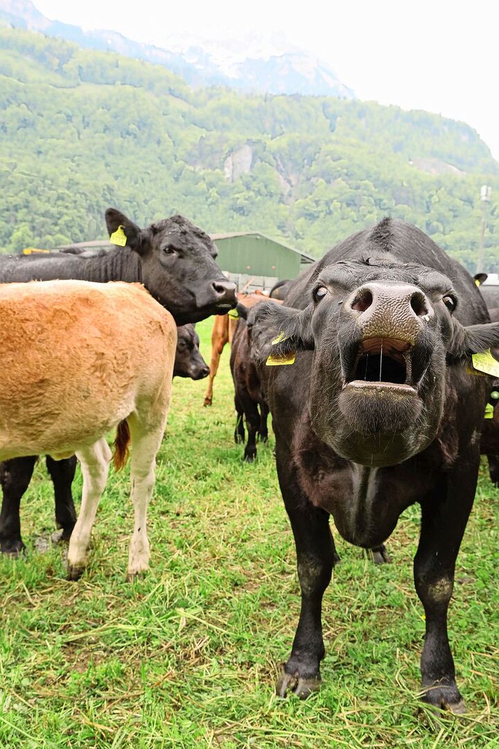 «Die Rasse ist genügsam und setzt schnell Fett an. Wer aber auf Vollmast setzt, braucht dementsprechend gutes Grund- und Raufutter», sagt Kubli. Über den Handel gelangen immer wieder Tiere zu ihm, die zu leicht und schwer vermittelbar sind. Diese «pushe» er gezielt mit einer Getreidemischung aus deklassiertem Getreide und Resten aus der Lebensmittelindustrie – ohne Soja. Im Sommer gehen die Kühe mit ihren Kälbern sowie die Aufzuchtrinder auf die Alp. Die Ausmastgruppe bleibt im Tal. Obwohl sie laut Label vom Weide-RAUS ausgenommen ist, darf sie bei den Kublis ebenfalls auf die Weide – ein Vorteil, den die arrondierten Flächen ermöglichen.