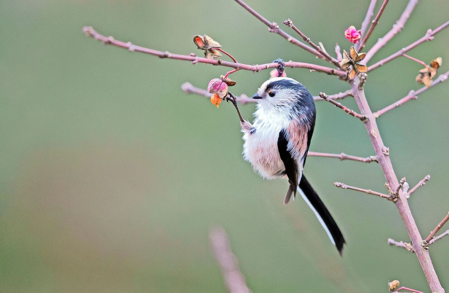 [IMG 2]Das eher aggressiv veranlagte und alles andere als menschenscheue Rotkehlchen haben wir Ihnen an dieser Stelle bereits vorgestellt. Die Schwanzmeise ist zwar ähnlich klein, aber im Gegensatz zum Rotkehlchen äusserst sozial: Wie die Vogelwarte schildert, verbringen die schwarz-weiss-braunen Vögel das ganze Jahr in Gruppen, schlafen gemeinsam und helfen sich ab und zu gegenseitig bei der Brutpflege oder wenn es einen Feind abzuwehren gilt. Ihren Namen hat die Schwanzmeise von ihren langen Schwanzfedern, die ihr zum Balancieren dienen. Dank ihrer kleinen Grösse und ihres geringen Gewichts können diese Meisen bis in die äussersten Zweige turnen und dort Insekten und Spinnen erbeuten, wo grössere Vögel nicht hinkommen. Fast ein wenig geschwätzig wirkt die Schwanzmeise, zirpt sie doch in einem fort vor sich hin und bleibt so mit ihren Artgenossen in Kontakt. In den Bau ihrer Nester investieren diese Vögel wochenlange Arbeit; das Resultat ist eine mit Federn und Haaren gepolsterte Kugel.