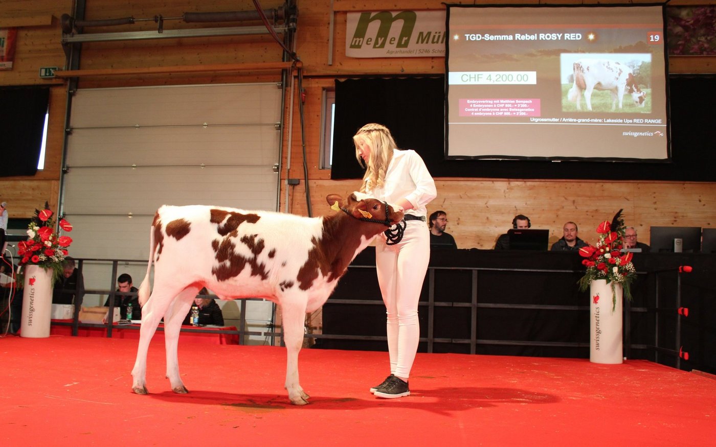 Bei den Red Holstein bot Matthias Sempach aus Entlebuch das zweieinhalb Monate alte Kuhkalb TGD-Semma Rebel Rosy Red an. Rosy hat ein genomisches Resultat von 1450 ISET. Den Zuschlag erteilte Aebi bis 8500 Franken, inbegriffen ist ein Embryo-Vertrag mit Matthias Sempach im Wert von total 3200 Franken. Die Preise der übrigen Red Holstein-Spitzentiere lagen zwischen 3000 bis 6500 Franken je Tier. Am Ende der Auktion hatten 46 Stück der besten Milchrassen-Tiere der Schweiz einen neuen Besitzer.
