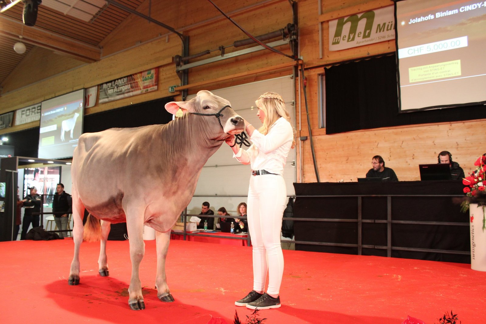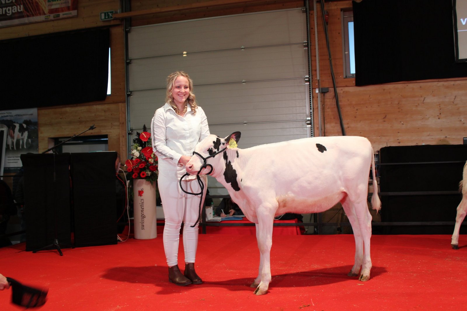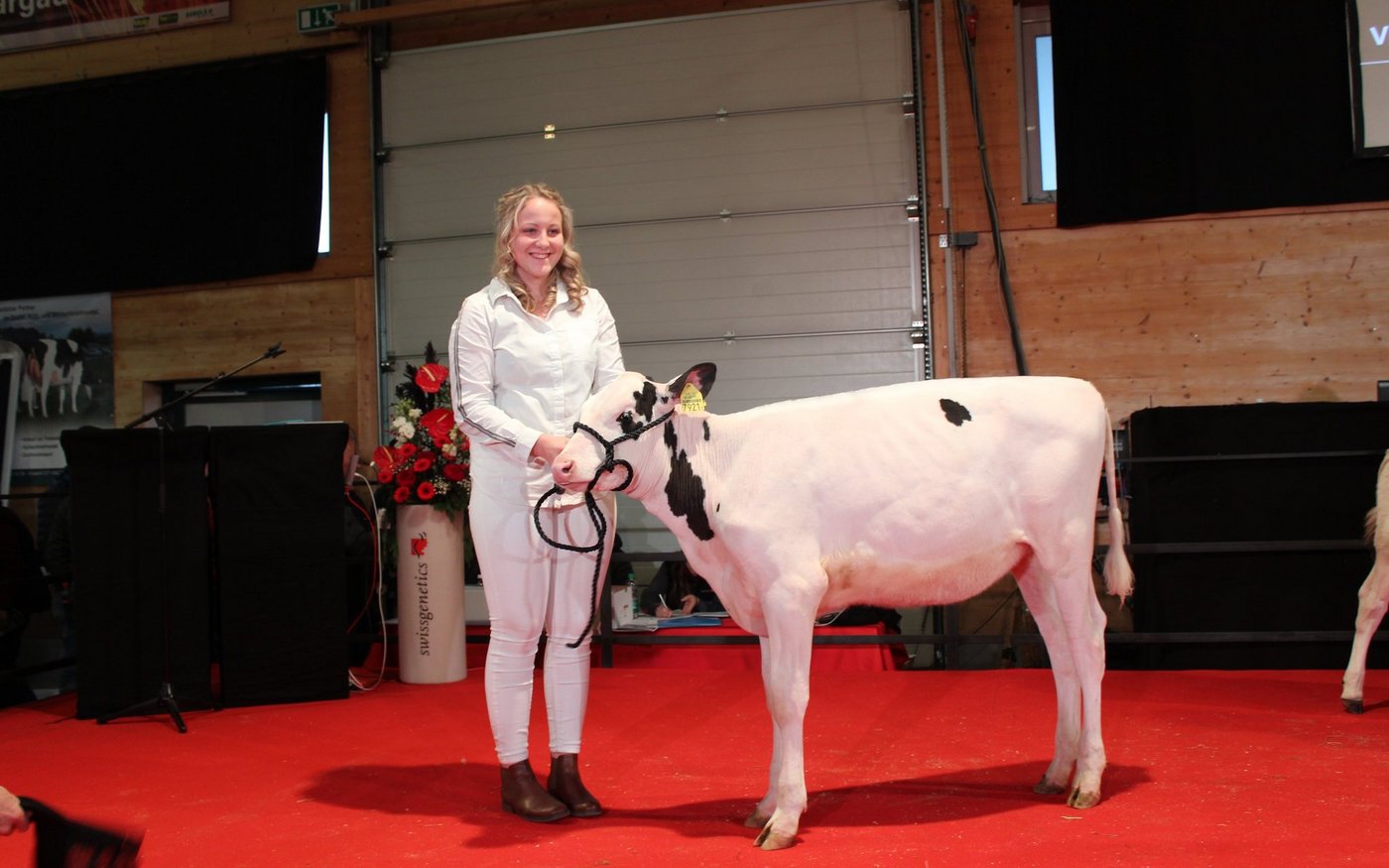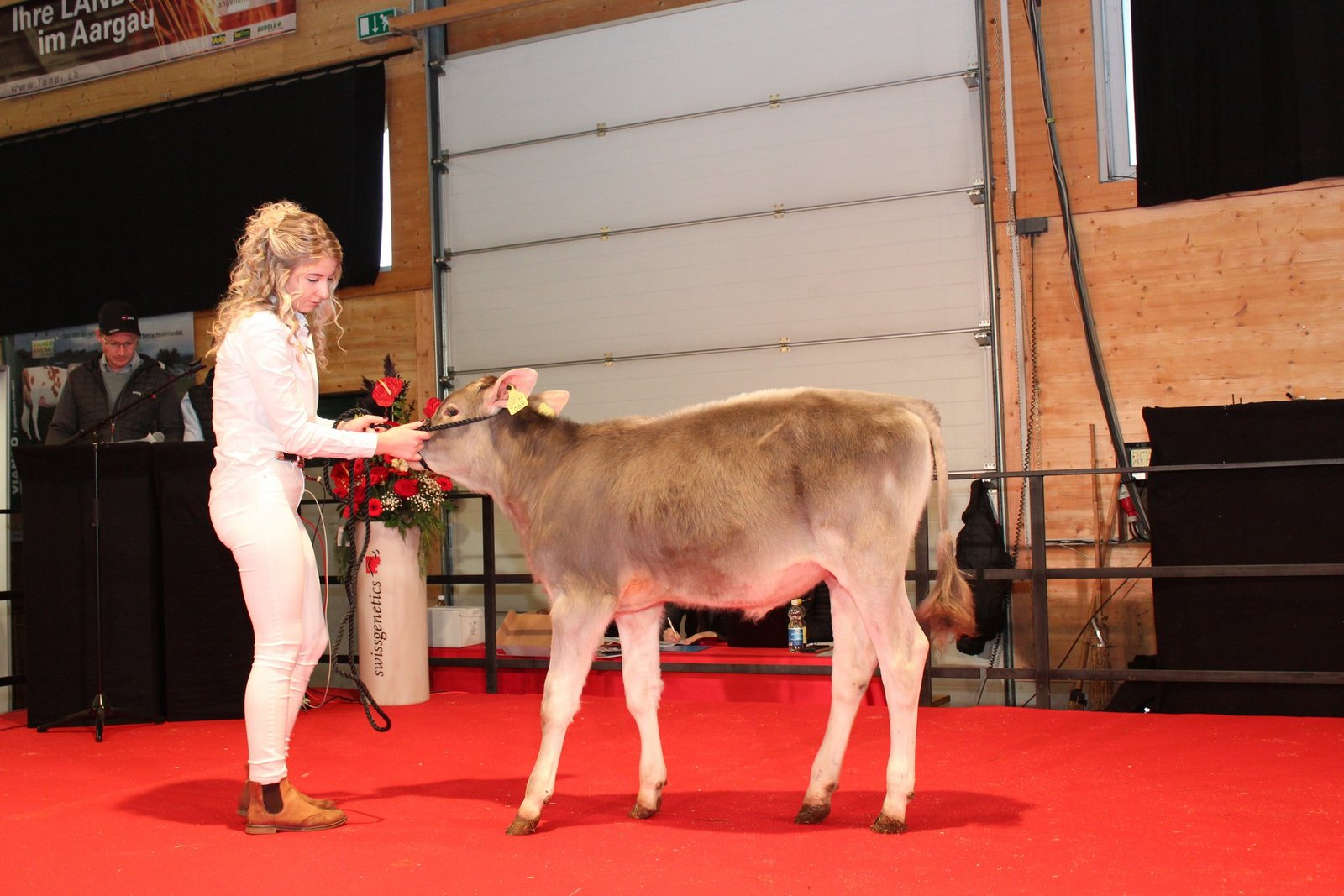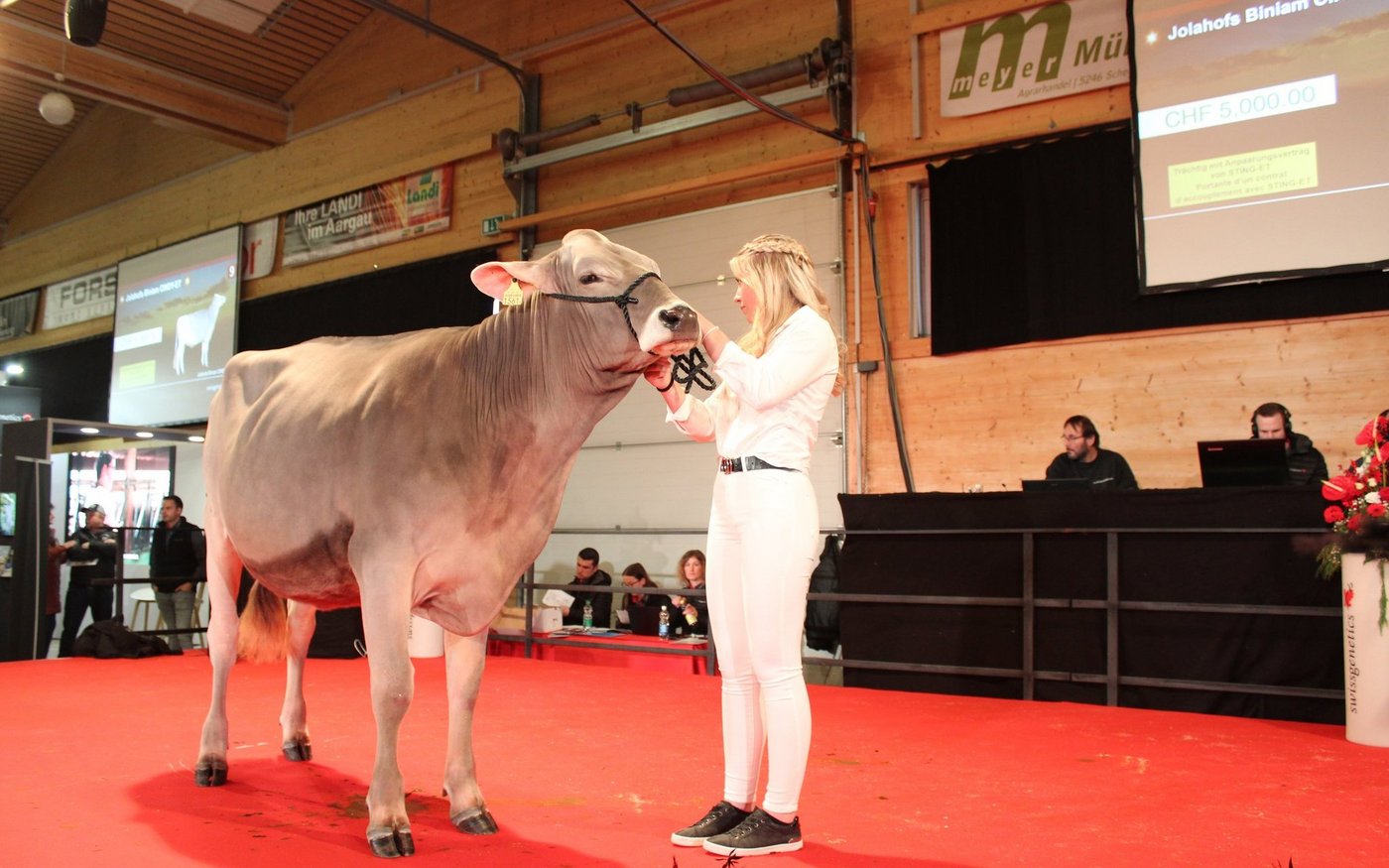 Bei den Holstein versteigerte Aebi die Schwester des beliebten Stiers Kings-Ransom Dropbox, Homecoming Daze aus der Zucht von Thomas Gerber aus Dagmersellen, für 8500 Franken. Als das knapp viermonatige Kuhkalb Budjon Delta-Lambda Eylin auf die Bühne kam, explodierten die Gebote. «Eine Gelegenheit, die sie nicht verpassen sollten», rief Aebi in die gefüllte Vianco-Arena. Eylin stammt von einer der besten Kühe aus den USA ab, von Ladyrose Caught your Eye Ex-94. Der Preis für das Jungtier kletterte in kürzester Zeit auf 12 500 Franken und war damit das zweitteuerste Tier an der Auktion. Die Preise der Holstein-Tiere lagen an der Auktion zwischen 3200 und 8500 Franken.