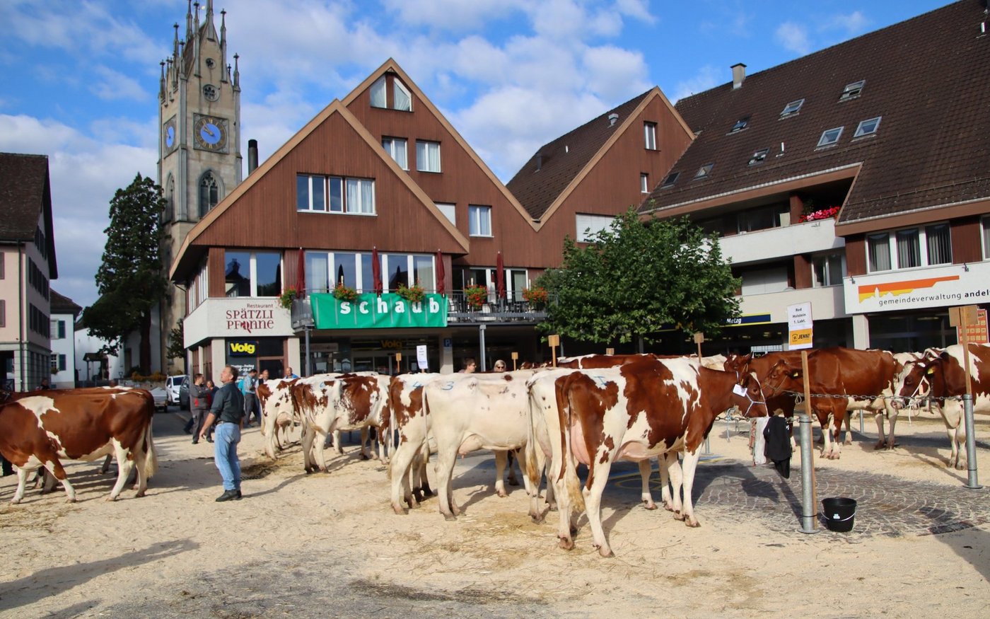 Es ist wohl die einzigartige Kulisse, welche die Regionalviehschau auf dem Andelfinger Marktplatz so speziell macht. Einmal pro Jahr, jeweils am letzten Mittwoch im September, sorgen die Kühe für ein ganz spezielles Bild. Organisiert wird die Schau von der Vereinigung der Viehzuchtorganisationen aus dem Weinland und angrenzenden Regionen.