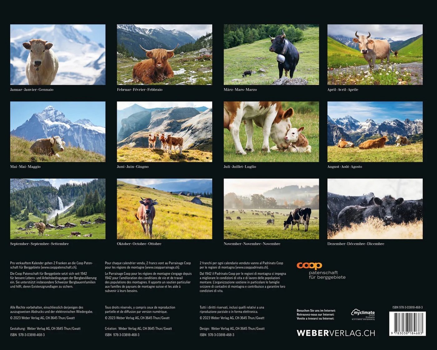 Für jeden Monat gibt es ein wunderschönes Bild einer Schweizer Kuh. Ob Simmentaler, Braunvieh oder doch das Schottische Hochlandrind – der wunderschöne Kalender des Fotografen Marcus Gyger zeigt in bestechenden Bildern die Kühe der Schweiz. Und das alles vor dem Hintergrund einer herrlichen Berglandschaft, wie sie nur in den Alpen zu finden ist.
