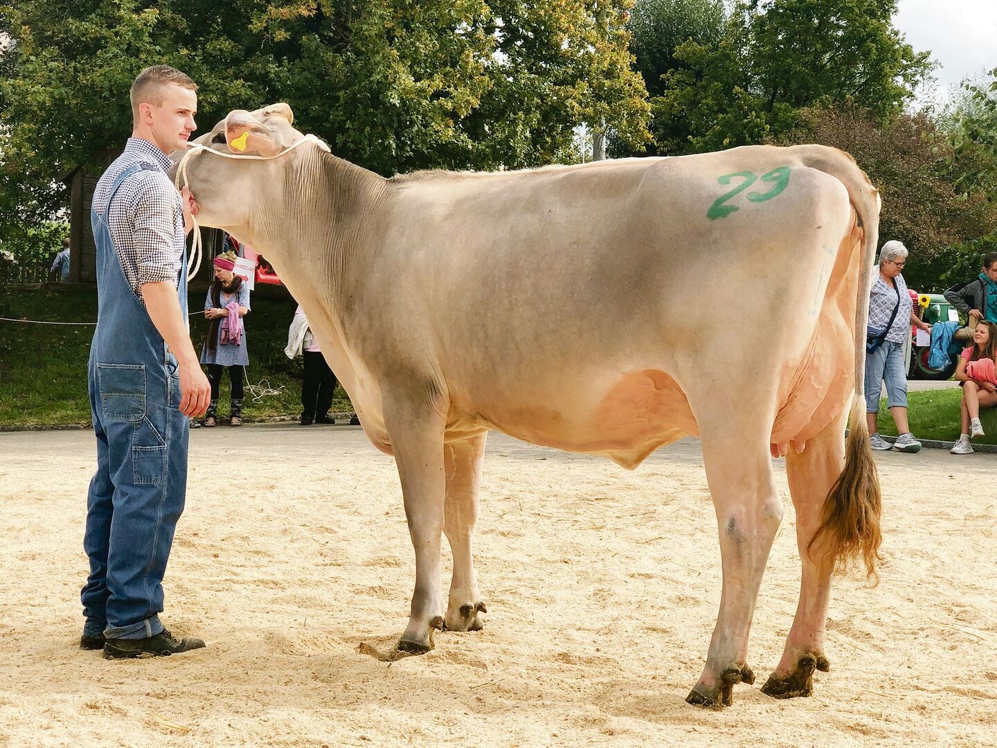 Die O-Malley-Tochter, welche den 2. Rang in der zweiten Abteilung der jüngeren Kühe belegt, wird von Beni Schmid zur Schöneuter der jüngeren Kühe gekürt. Sie ist es auch, welche den Miss-Genetik-Preis gewinnt. Die Kuh gehört der GG Bachmann aus Seewen.