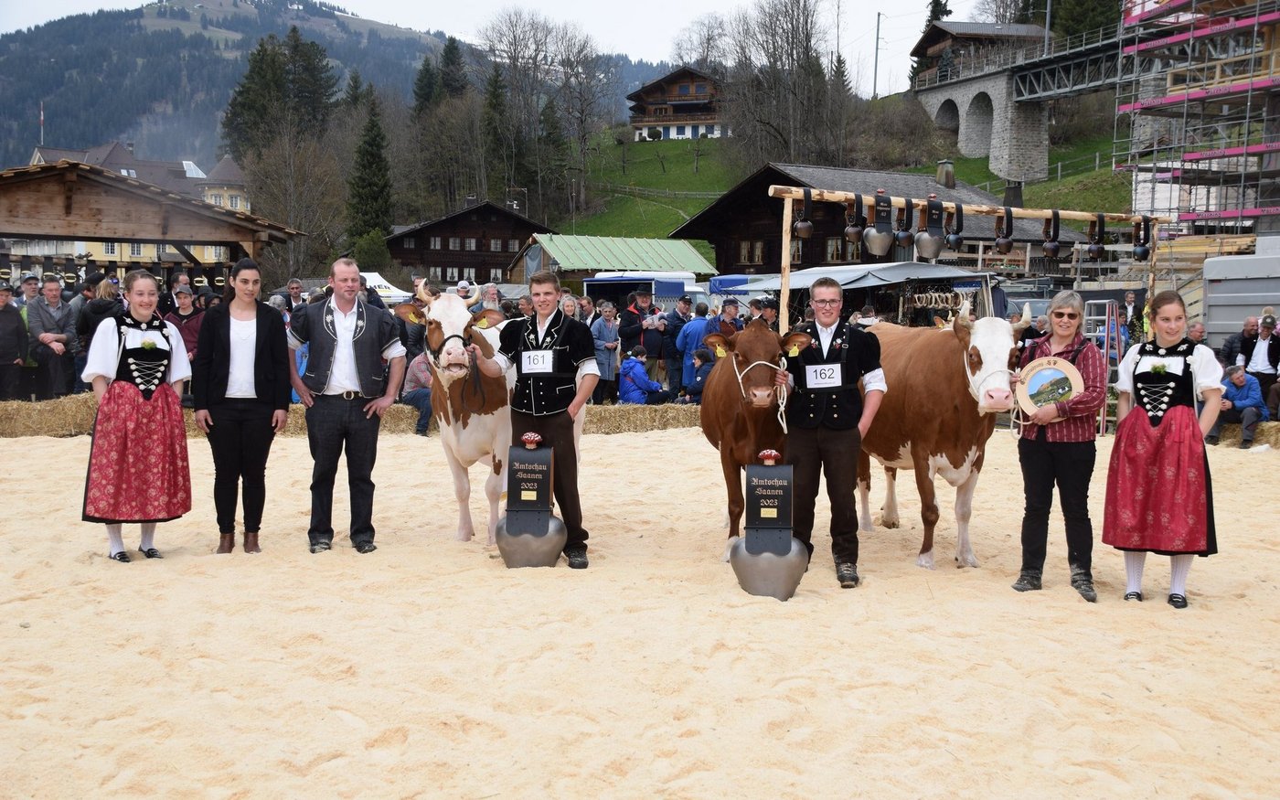 Der Richter David Gerber aus Schangnau BE war wahrhaftig nicht zu beneiden, als er die hochkarätige Simmentalerschau richten durfte. Die Rasse bildete nicht nur am meisten Tiere, sondern sie war auch qualitativ am besten. Als Miss Saanenland wählte er die eindrückliche Amarone Ticina von Stephan Perreten aus Lauenen BE. Schöneuter wurde die Kuh Brisago Canada von Jonathan Perreten aus Lauenen BE. Den Titel einer Ehrenerwähnung holte sich Leon Anette von Roger Kohli aus Feutersoey BE. Junior-Siegerin wurde Tur-Bach Unikat Walida von Ueli Bach aus Turbach BE. Das schönste Rind hatte Bruno von Grünigen aus Turbach BE mit seiner Gletscher Doreen. Reserve wurde Filter Lana von Sandrine Matti auch aus Turbach BE.