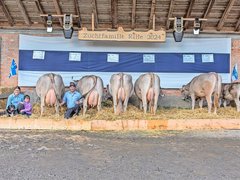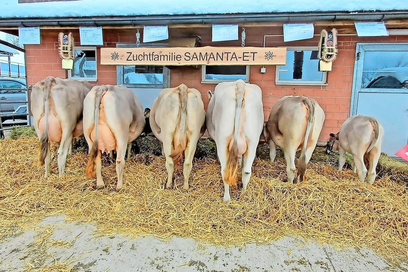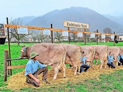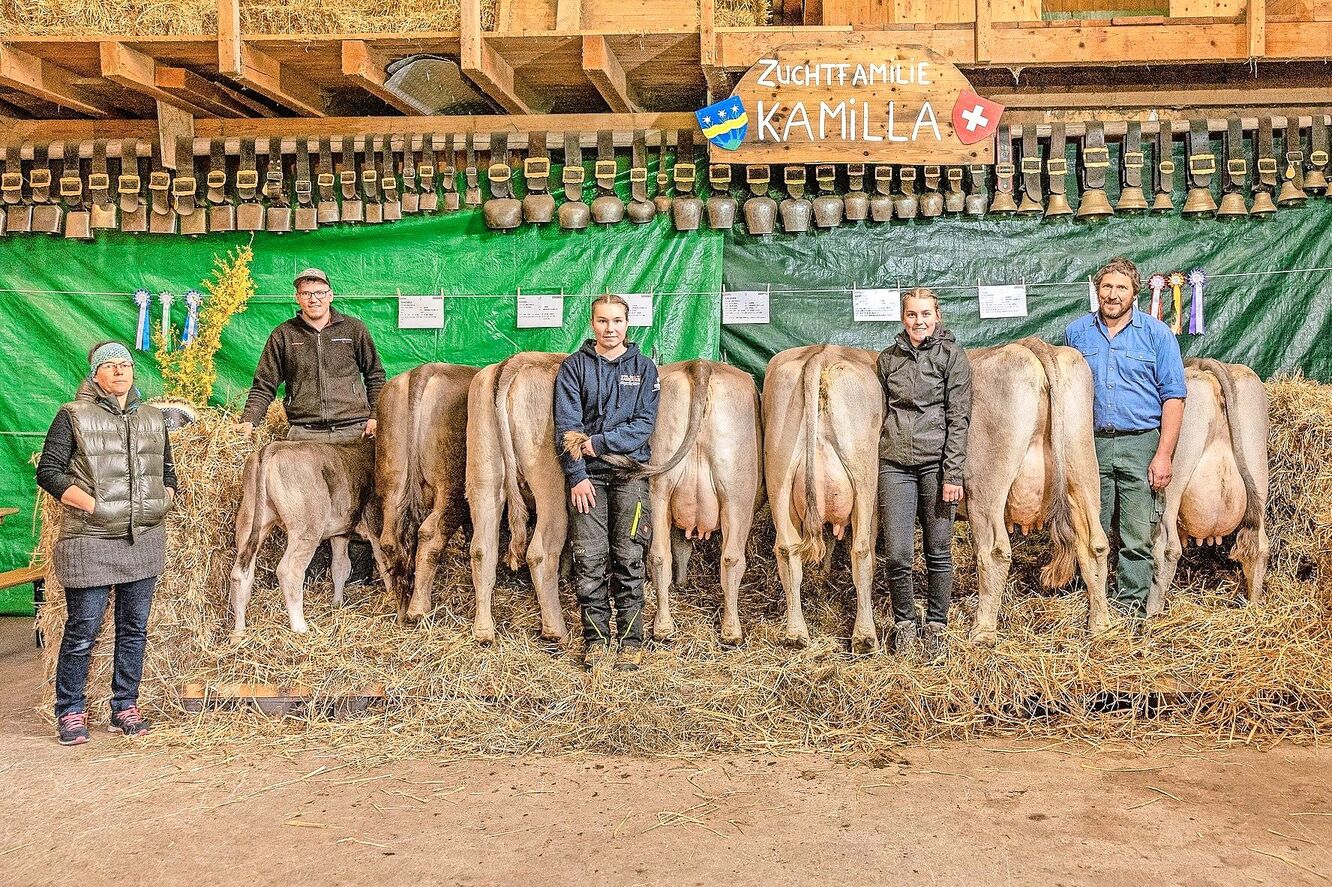 Die Zuchtfamiliensaison ging kürzlich zu Ende. Total wurden schweizweit 191 weibliche Zuchtfamilien (wZF) der Rassen Brown Swiss, Original Braunvieh, Jersey, Grauvieh und Hinterwälder präsentiert. Im Kanton Aargau wurden zwei BS-Zuchtfamilien gezeigt, beide kamen aus dem Betrieb von Wendelin Stäuble aus Sulz. Mit Vasir Vanessa war darunter eine aussergewöhnliche Tiergruppe, denn aus der Stammkuh Vanessa wurde die eindrückliche Zahl von gleich sieben weiblichen Nachkommen gezeigt. Dadurch erhielt diese Gruppe im Gesamteindruck das Maximum, was total hohe 84 Punkte ergab.