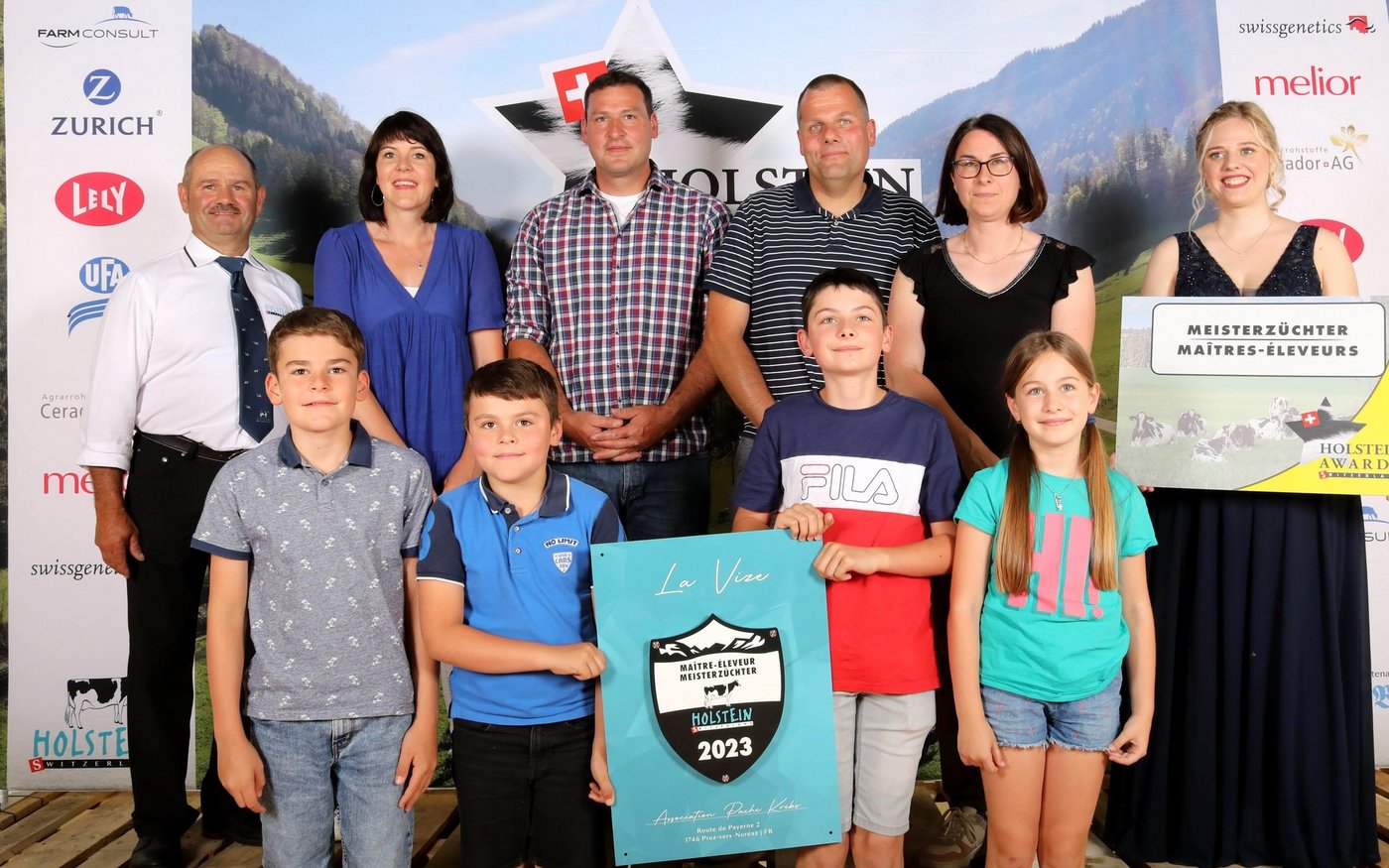 Am sommerlichen Treffen der Holstein-Züchter hat der Verband Holstein Switzerland heuer im jurassischen Courcelon besonders verdienstvolle Züchter mit einem Award gekürt. Es ist das 12. Mal, dass der Verband die Preise vergibt; die Holstein-Awards finden in einem jährlichen Turnus zwischen den sieben Wahlkreisen in einem anderen Kanton statt. Unter Züchtern besonders begehrt sind dabei die Awards für die Meisterzüchter.