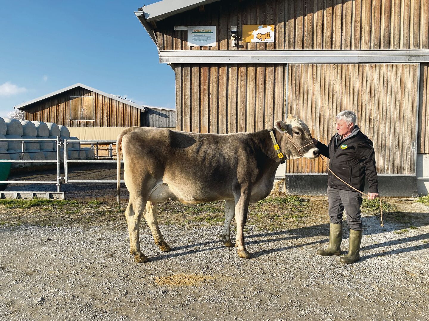 Der Betrieb von Rolf Heer und seinem Sohn Patrik ist eine Generationengemeinschaft in Ebertswil ZH. Mittlerweile sind etwas weniger als die Hälfte der 90 Kühe und Rinder im Stall genetisch hornlos und von drei Stieren aus seiner Zucht gibt es Samen mit hornloser Genetik zu kaufen. Einer davon, Vialo PP, ist sogar europaweit erhältlich. Der Laufstall, der 90 Kühen Platz bietet, wurde 2007 gebaut. Das Futter besteht aus einem Viertel Silomais, dazu Heu, Luzerne, Biertreber und Grassilage.
