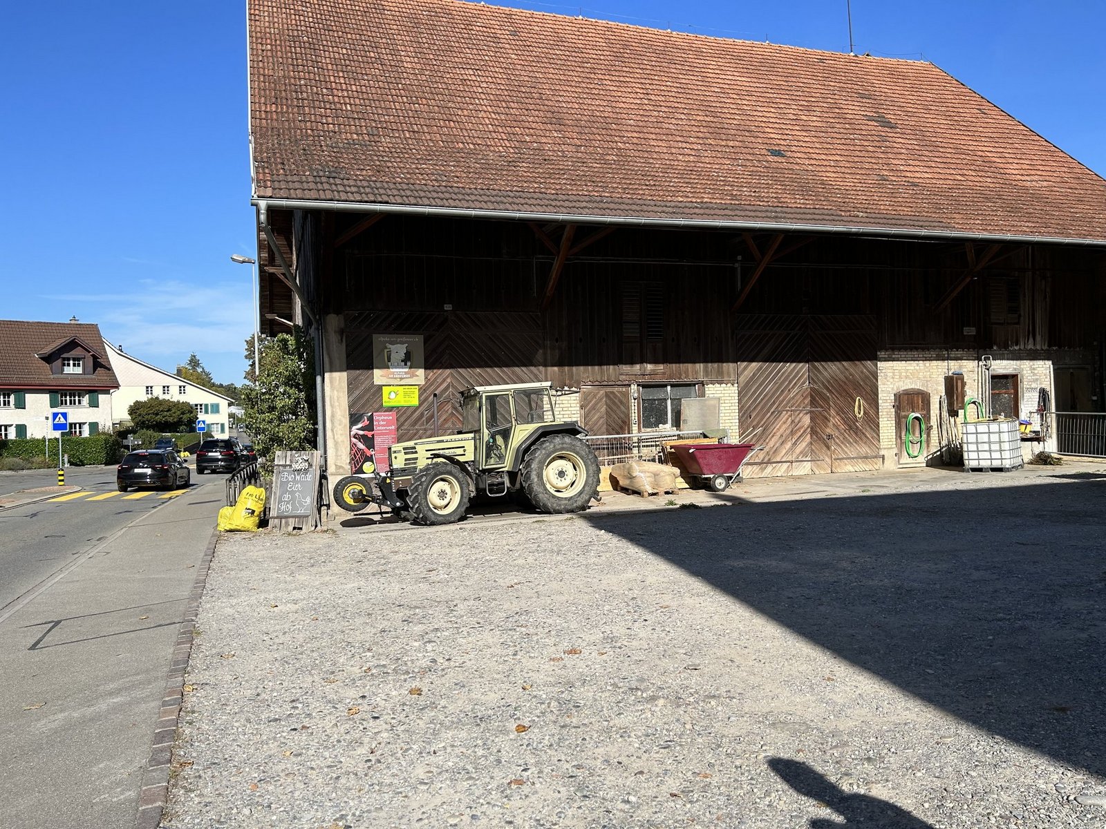 [IMG 2] Ökonomiegebäude und Wohnhaus des 10-ha-Betriebs liegen im Dorf an der viel befahrenen Rellikonstrasse. Zwei Drittel der Eier verkaufen Zollingers an Wiederverkäufer wie Volg- und Bioläden, ein Drittel direkt ab Hof. Die Hühnermobile sind 550 Meter vom Wohnhaus entfernt.