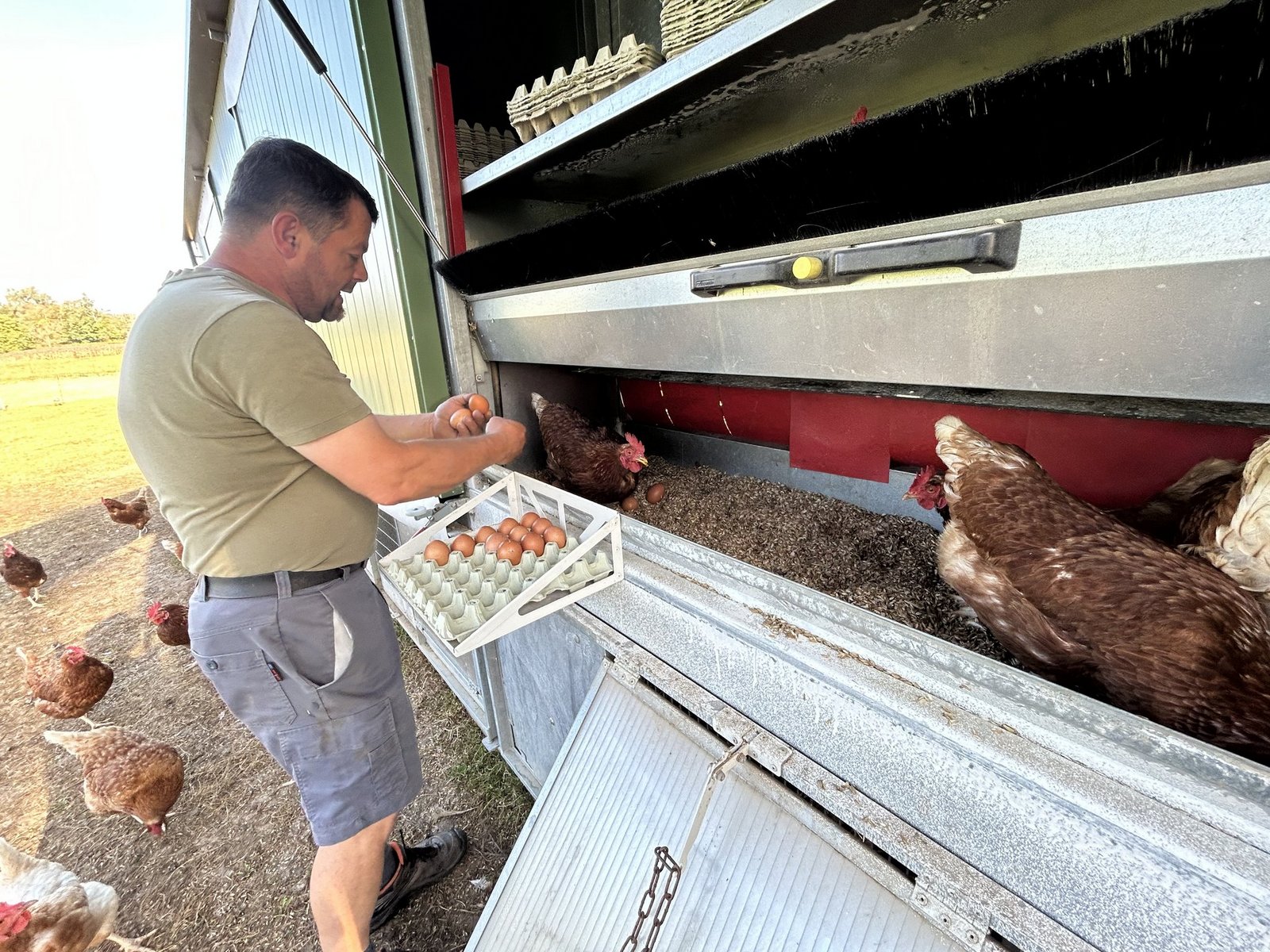 Die Anschaffungskosten für ein Mobil sind günstiger als ein Stallbau. Zu den Eierpreisen sagt Stefan Zollinger: «Ich halte mich an die Richtpreise von Bio-Suisse.» Im Wiederverkauf verlangt er 60 Rappen pro Ei, im Direktverkauf 80 Rappen. «Das tönt nach viel. Aber ein mobiler Stall macht mehr Arbeit und die Leistung ist auf weniger Einheiten verteilt», erklärt er.