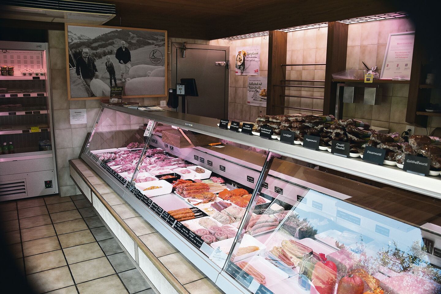 «In den 90er-Jahren hat mein Vater in eine Rauchküche investiert, deshalb haben Küchenrauchspezialitäten bei uns eine lange Tradition», erzählt der Metzger. Würste, Buurehamme oder Speckseiten – geräuchert wird das Fleisch in der hauseigenen Räuki.