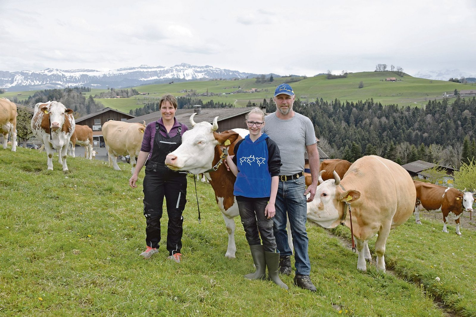 Adelheid und Daniel Graf gehen ihren eigenen Weg, sei es in der Zucht oder mit ihrem Anbindestall. Neu kommt jetzt noch ein weiteres Abenteuer dazu. Diesen Frühling gehen sie zum ersten Mal z Bärg. Auf der Alp Schinegg auf dem Schallenberg sind sie als Hirtenpaar angestellt. Neben 15 eigenen, gilt es dort 140 fremde Rinder zu betreuen. Auch das Einstallen gehört jeden Tag dazu. «Wir freuen uns auf diese Herausforderung», sagt die Züchterfamilie bestimmt. Z Bärg ga, sei schon immer ihr Traum gewesen. «Unser Sohn Andri wird in dieser Zeit, den Talbetrieb mit den Kühen betreuen», natürlich kann er auch auf die Mithilfe seiner Schwester Daria zählen. «Wenn Not am Mann ist, werden wir ihn natürlich unterstützen», hält der Meisterlandwirt fest. Denn der Schallenberg sei ja nicht allzu weit von ihrem Zuhause entfernt.