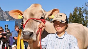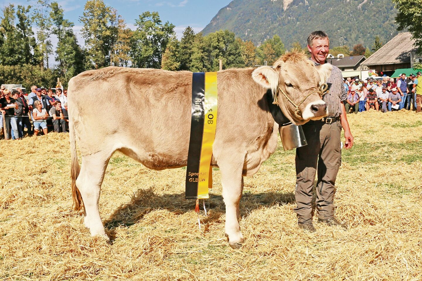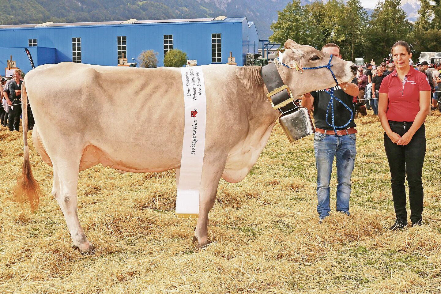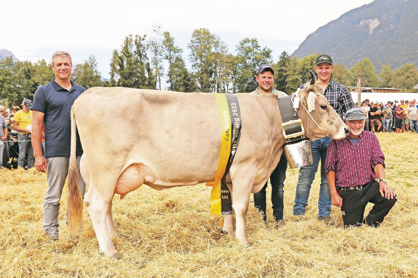 Für grosses Kino sorgte die Brown-Swiss-Kuh Hollywood von Simon Gisler, Haldi b. Schattdorf. Sie brachte mit ihrer kompletten Bezeichnung Global View Superstar Hollywood internationales Flair an die Urner Viehschau. «Die Kuh überzeugt mich mit ihrer Eleganz und Körperbreite, zudem verfügt sie über ein sehr gut verwachsenes Voreuter», so der Bündner Experte Marco Bettini. Ebenfalls aufs Podest schafften es zwei imposante Kühe von der Familie Urs Gisler, Andermatt. Vize wurde Calvin Cameron, welche auch Eutersiegerin der älteren Kühe wurde, die Ehrenerwähnung holte die Titelverteidigerin Blooming Belinda, notabene eine Kuh mit 50'000 kg Lebensleistung.