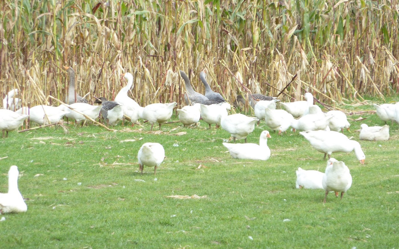 Angefangen mit der Gänsehaltung hatten Peter und Cornelia Eugster vor zehn Jahren mit sieben Gänsen. Wegen der grossen Nachfrage nach Schweizer Gänsefleisch ist der Betriebszweig stetig gewachsen. Ab 2016 hielten sie 300 Gänse. Die Bauernfamilie aus dem Rheintal produzierte bis letztes Jahr Ribelgänse. Tagsüber weideten die Gänse auf dem Ribelmaisfeld, die Nacht verbrachten sie im Stall. «Das Maisfeld ermöglichte ihnen viel Auslauf, Nahrung und Schutz vor grosser Hitze», führt Peter Eugster aus. Bademöglichkeiten hatten sie im Stall. Jetzt, wo dieser leer steht, wird er als Lagerraum genutzt.