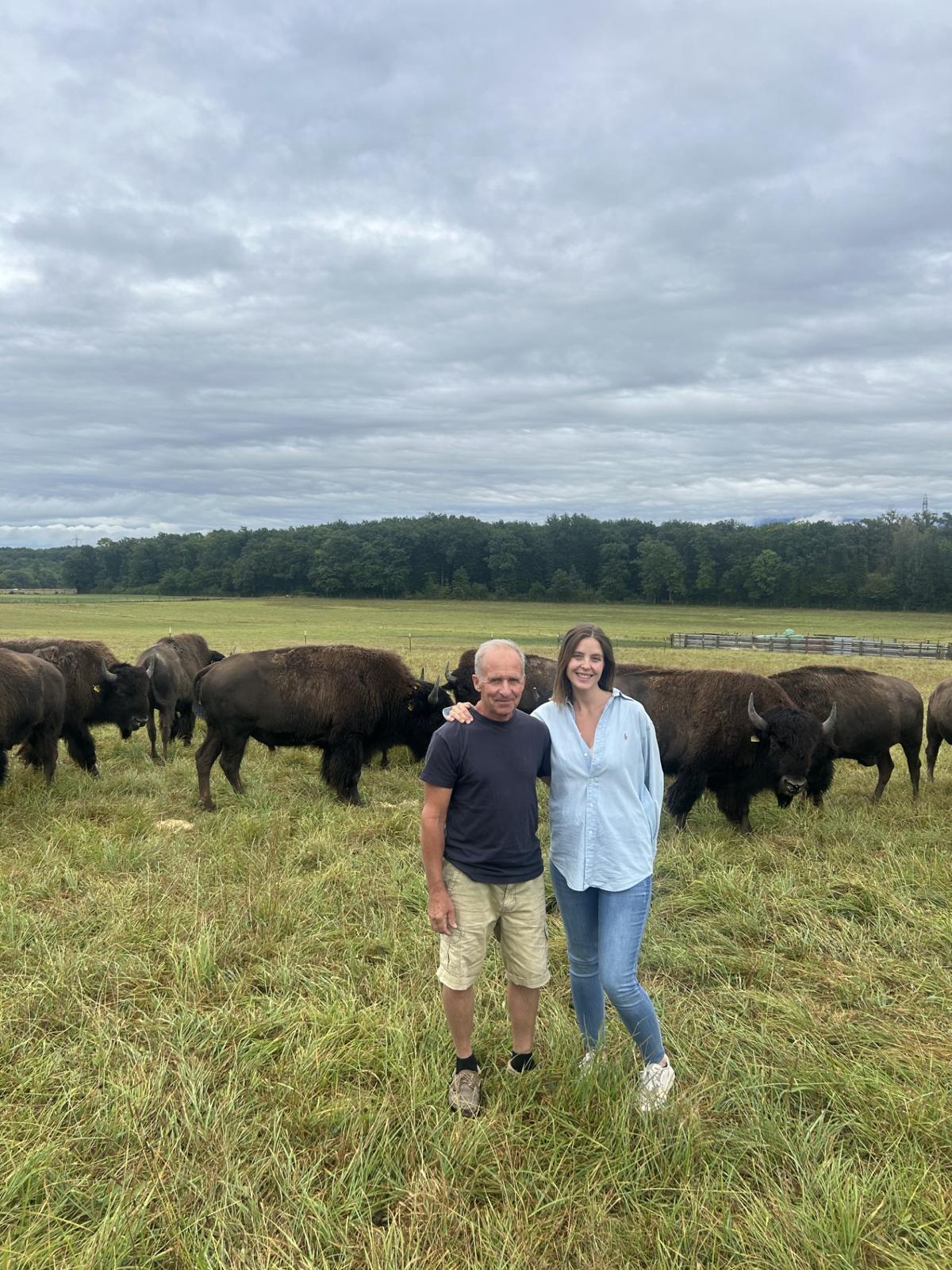 Die Bisonzucht der Familie Girardet wurde 1990 von Kims Vater, Laurent Girardet, gegründet. Er war fasziniert von Nordamerika, seinen weiten Landschaften und der Tierwelt. In der Überzeugung, dass sich Bisons auch an die Genfer Weiden anpassen könnten, importierte er die ersten Tiere in die Schweiz. Damals hielten viele diese Idee für unrealistisch. Doch inzwischen hat sich die Nische etabliert: Rund zehn Züchter teilen sich den Markt, darunter drei mit vergleichbar grossen Herden wie die der Girardets.