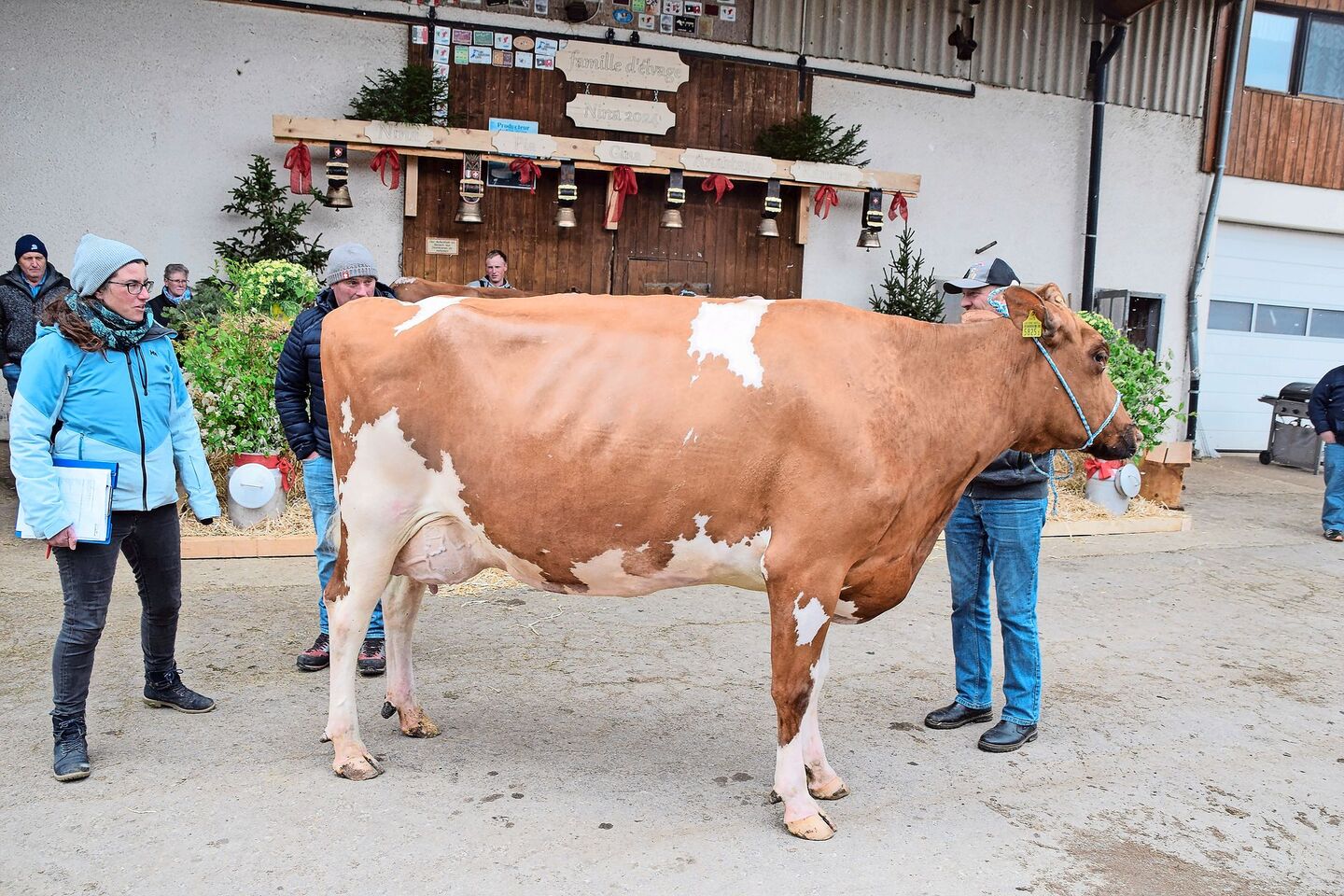 Nina und ihre vier Töchter wurden von Sandra Staub-Hofer, Swissherdbook, und von Gabriel Scheidegger, Neuenburger Fleckviehzuchtverband, mit der hohen Note von 82 Punkten (Klasse A) beurteilt. Nina, die Heinz Baur als Kalb bei Martin und Vreni Kamber aus Balsthal gekauft hatte, präsentierte sich immer noch einwandfrei mit einem tadellosen Exterieur. Mit Leistungen von über 10'000 kg Milch bei sehr guten Gehalten und tiefen Zellzahlen konnte sie so viele Punkte ergattern.