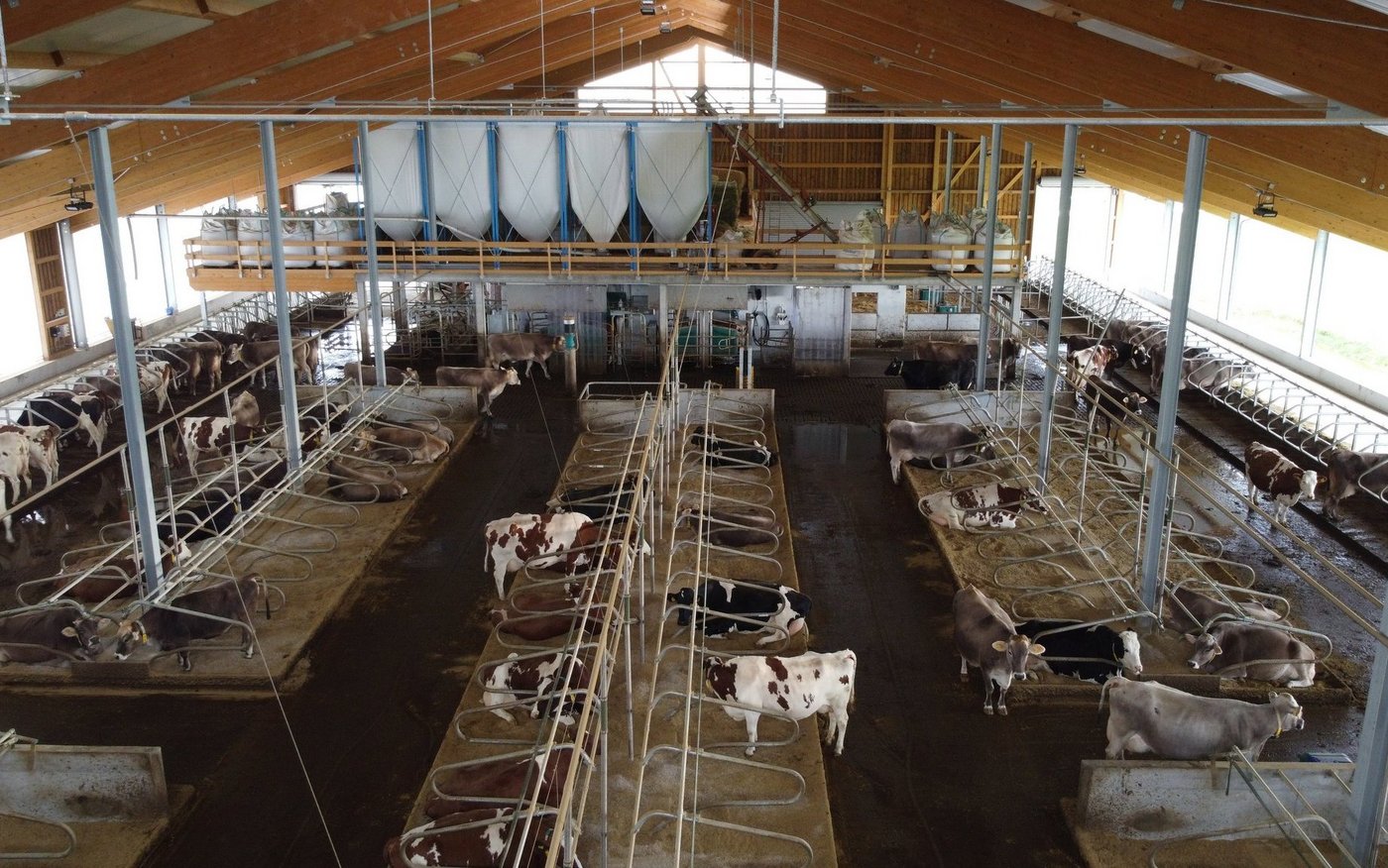 Um der oben genannten Krux mit der Rentabilitätsgrenze zu entgehen, plante Roth nicht für 70 Kühe, sondern gleich für 120 Stallplätze mit zwei Robotern. Mit 70 Kühen könne man sich keinen Angestellten leisten. «Aber mit der Grösse, wie wir sie nun haben, kann ich einen qualifizierten Angestellten, der eine Stellvertreterfunktion wahrnimmt, anständig entlöhnen.» [IMG 2]