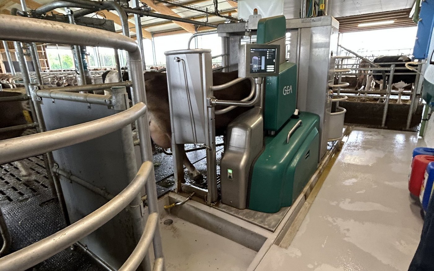 [IMG 5] Kernelement des Stalls sind die beiden Gea-Roboter. «Ich habe mir viel Zeit genommen für die Wahl des Roboters und eine Nutzwertanalyse gemacht», sagt Mathias Roth. Überzeugt hat ihn vor allem die Kompetenz des Serviceverantwortlichen, der auch für die Installation verantwortlich war.