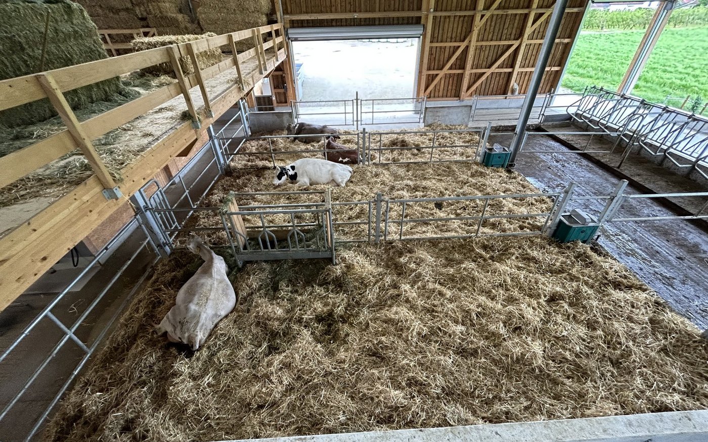 [IMG 3] 2020 konnte Mathias Roth von seinem Onkel einen Betrieb mit 23 ha Land dazu pachten. Zu seiner Herde von 30 Kühen kamen 40 Kühe dazu. «Wir molken in zwei Ställen, einerseits beim Onkel mit einem Roboter, andererseits bei uns im Melkstand», erzählt er. Schon nach einigen Wochen war ihm klar, dass diese Lösung nicht für die Zukunft war. «Klar überprüften wir Alternativen. Aber eine Betriebsgemeinschaft ist nicht zustande gekommen und viehlos wollten wir nicht weitermachen», sagt Roth und weiter: «Anfang März 2020 entschlossen wir uns, einen Milchviehstall zu Bauen. Das passt zu unserem Betrieb und unseren Fähigkeiten am besten.»