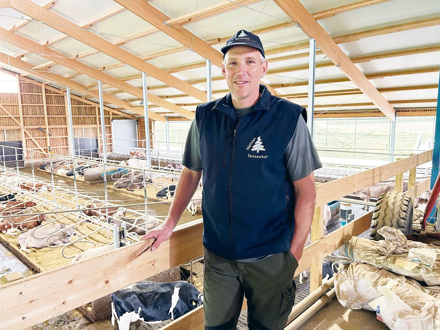 Mathias Roth holte sich im Frühjahr 2020 für seine Stallbauplanung einen erfahrenen Landwirt dazu. «Wir diskutierten einen Vormittag lang. Dabei haben wir das Betriebskonzept mit dem Neubau aus der Taufe gehoben», fasst Roth zusammen. Wenn man weiss, was man will, geht es meistens ruckzuck weiter – so auch auf dem Tannenhof. Im Mai 2020 begannen die Planungsarbeiten mit einem Stallbauplaner. Das Baugesuch reichte Roth im November 2020 ein. Die Baubewilligung erfolgte im Mai 2021. Baubeginn war im Juni 2021. Im Juli 2022 konnte der neue Stall bezogen werden. Nun ist der Stall seit knapp einem Jahr in Betrieb. Das Stallkonzept hat sich bis jetzt bewährt.
